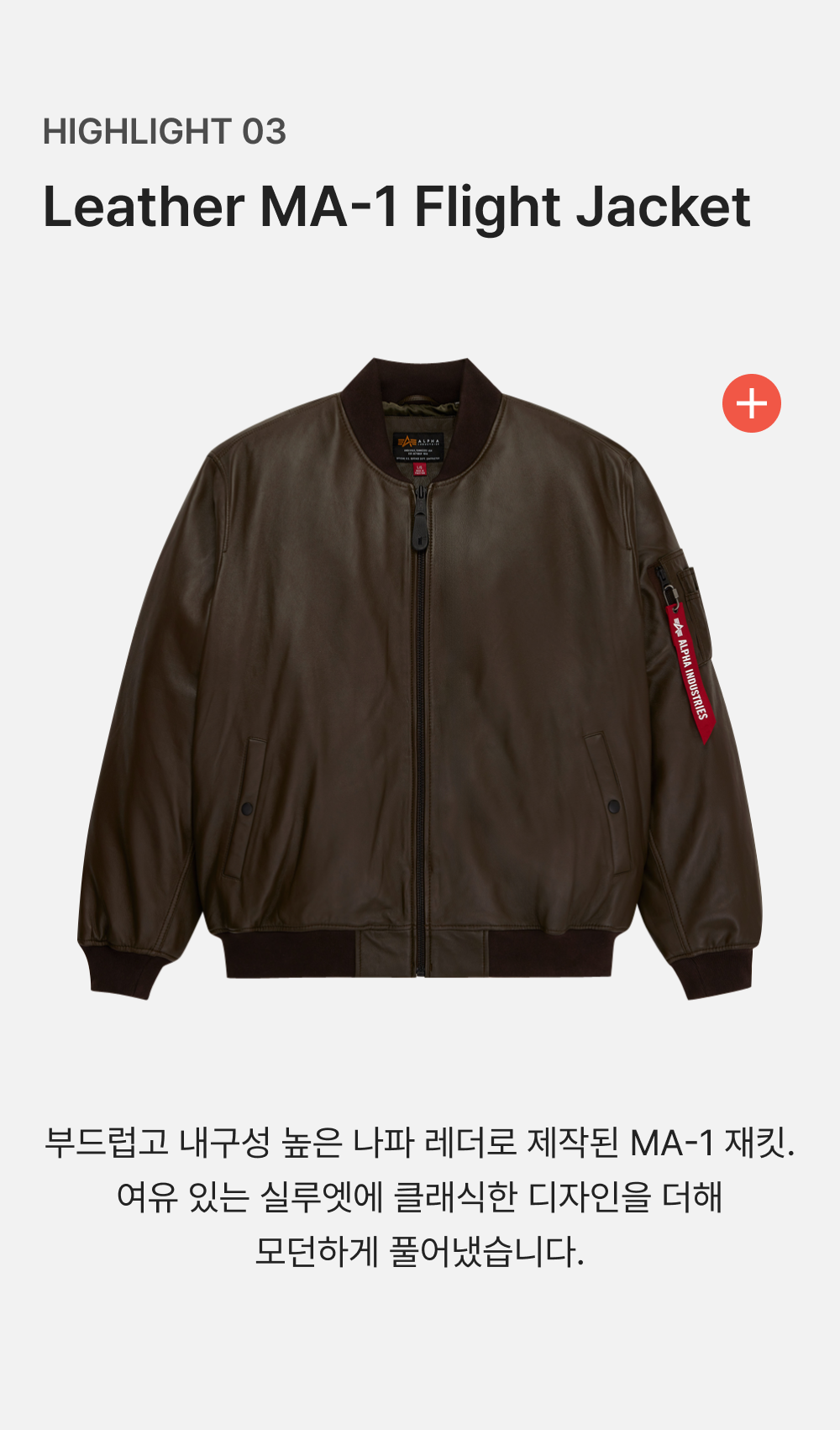 알파 인더스트리 레더 MA-1 플라이트 자켓 에스프레소