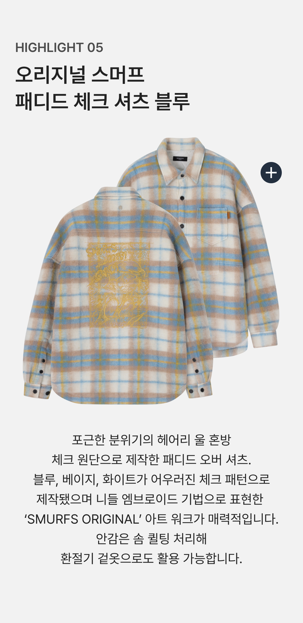 송지오옴므 오리지널 스머프 패디드 체크 셔츠 블루