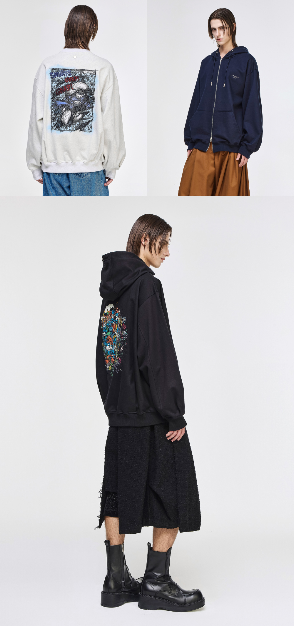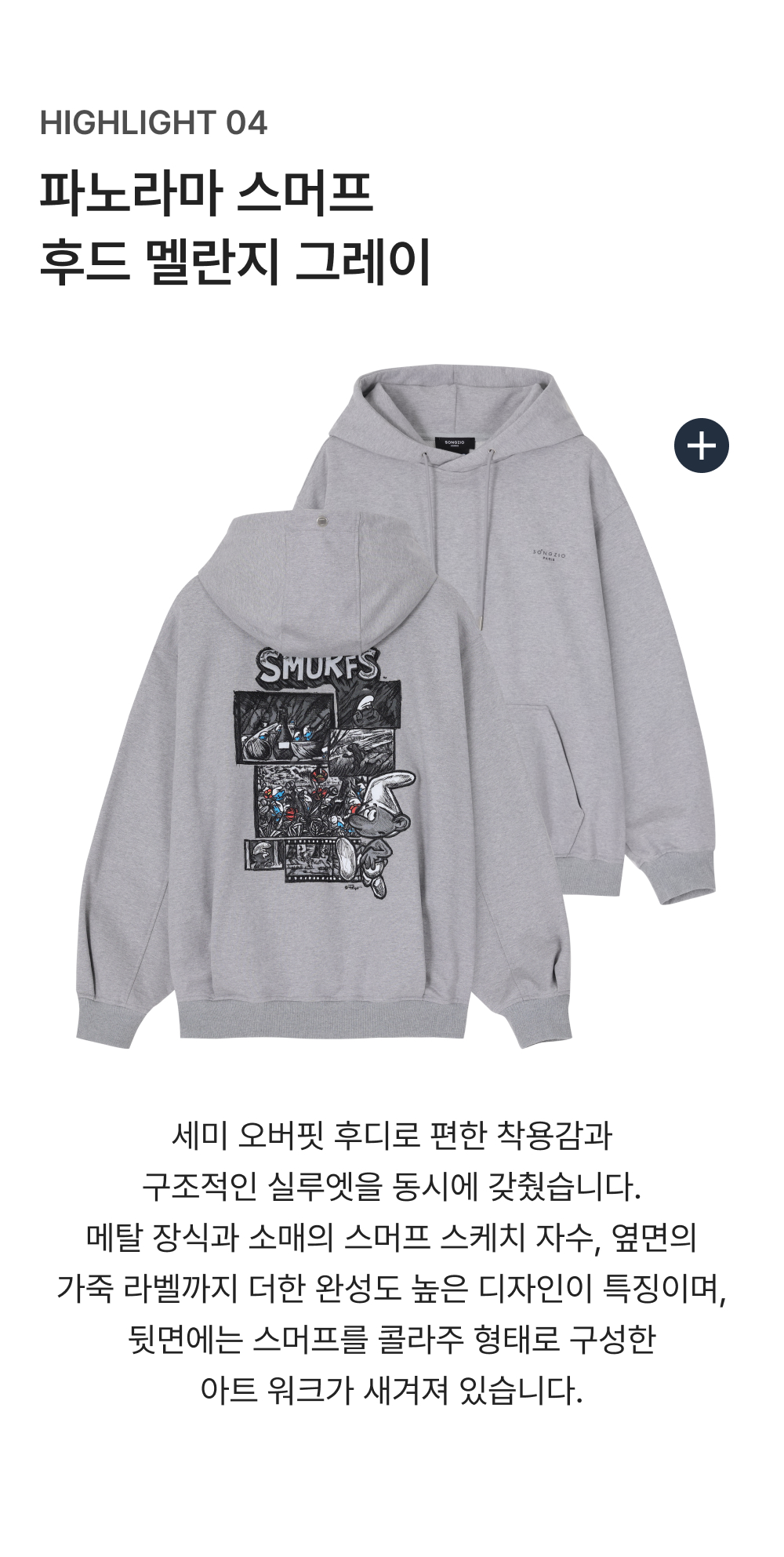 송지오옴므 파노라마 스머프 후드 멜란지 그레이