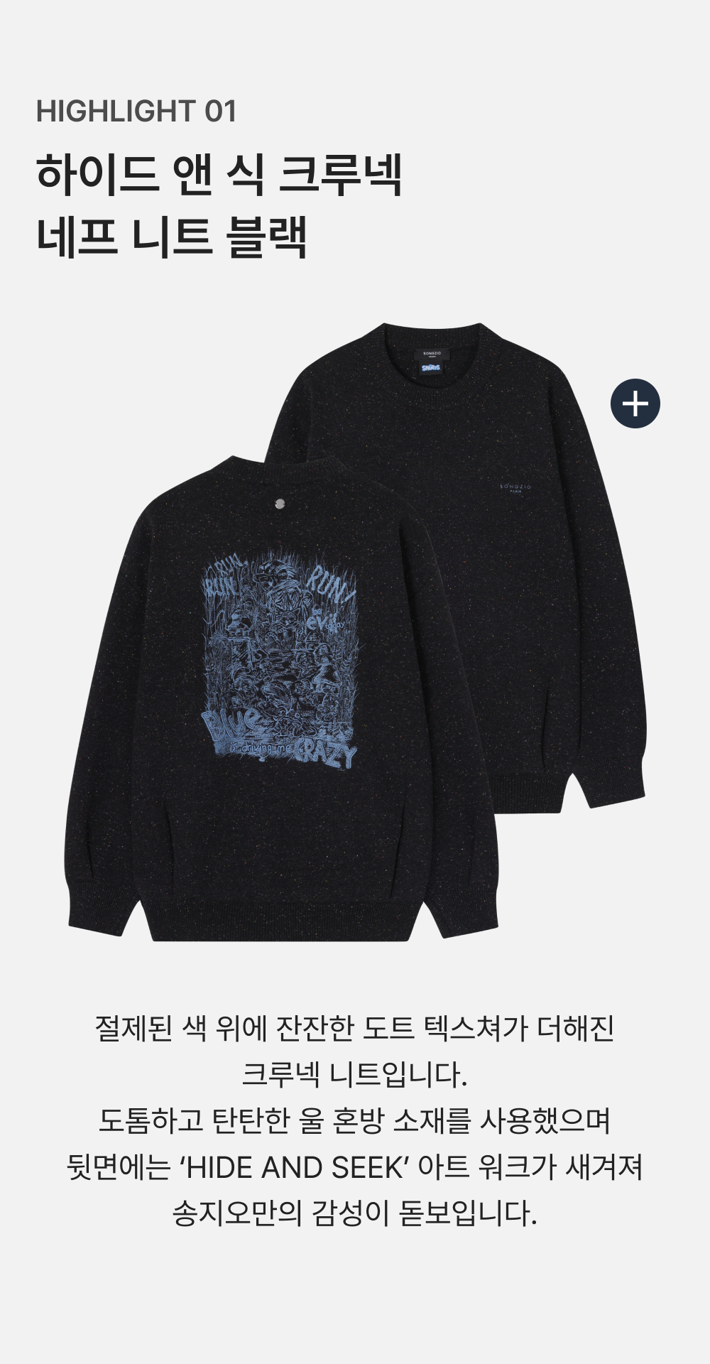 송지오옴므 스머프 리플렉션 카라넥 스웻 블랙