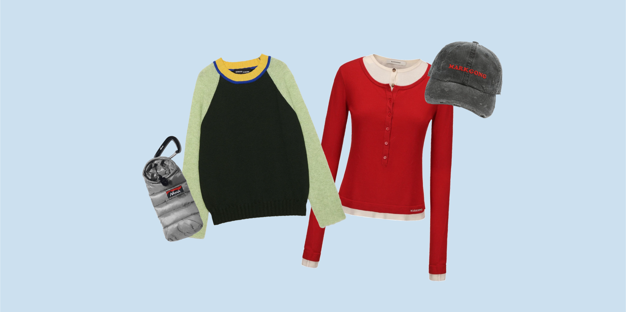 에드워드 커밍 우먼 모헤어 메리노 블렌드 조크 인 더 클로젯 스웨터 그린 세이지 옐로우 블루 - 25FW