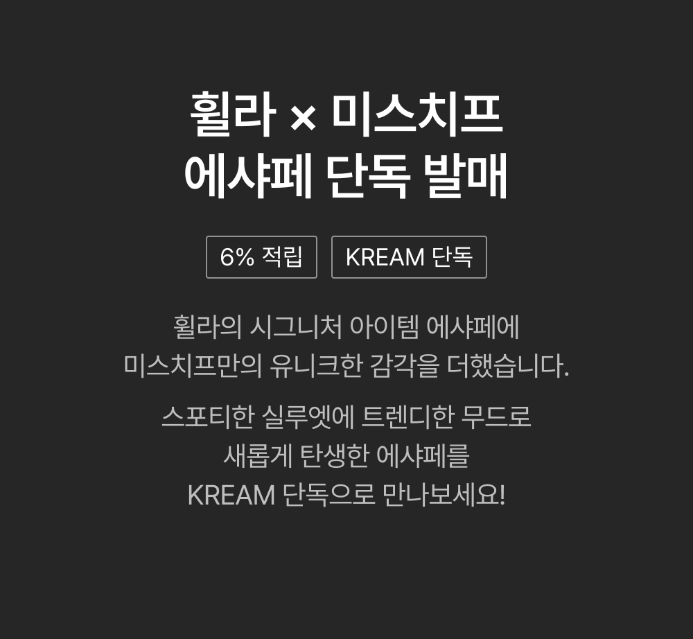 ![[6% 적립] 휠라 x 미스치프 에샤페 LX 브라운](https://kream-phinf.pstatic.net/MjAyNTA5MTZfMjYg/MDAxNzU3OTg5NTk5NDMy.VhRCMFuB9l1GHHgBPHmZ51oEoPkSPoKSgka5UzTmCXcg.8VcE4SWDmUD6OUYNQWy2iZmdIGOLZGLnbOby6_Gtqhog.PNG/a_6cc24b0b98814292ba0e5dc617d870ee.png)