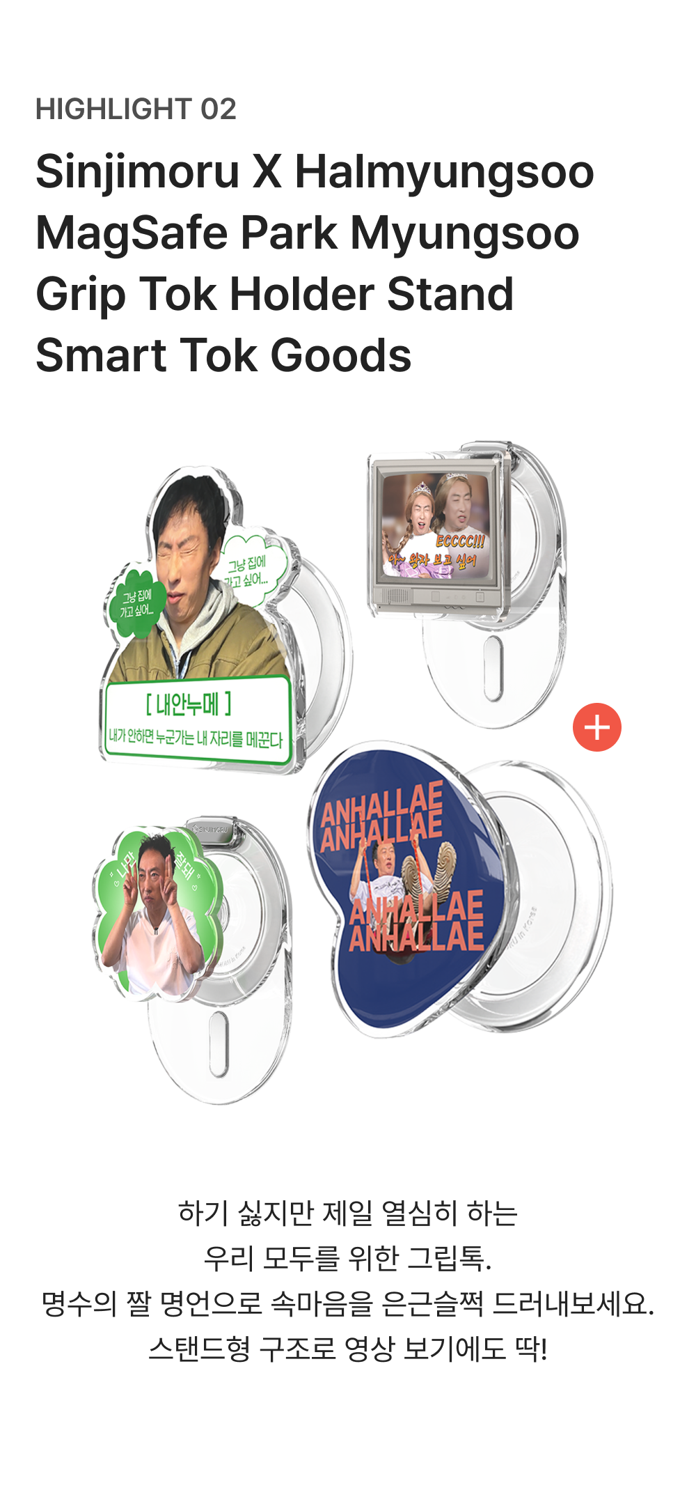 신지모루 x 할명수 맥세이프 박명수 고됨 그립 톡 홀더 스탠드 스마트톡 거치대 굿즈
