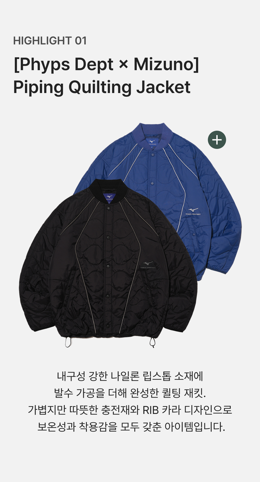 피뎁트 X 미즈노 파이핑 퀄팅자켓 블루