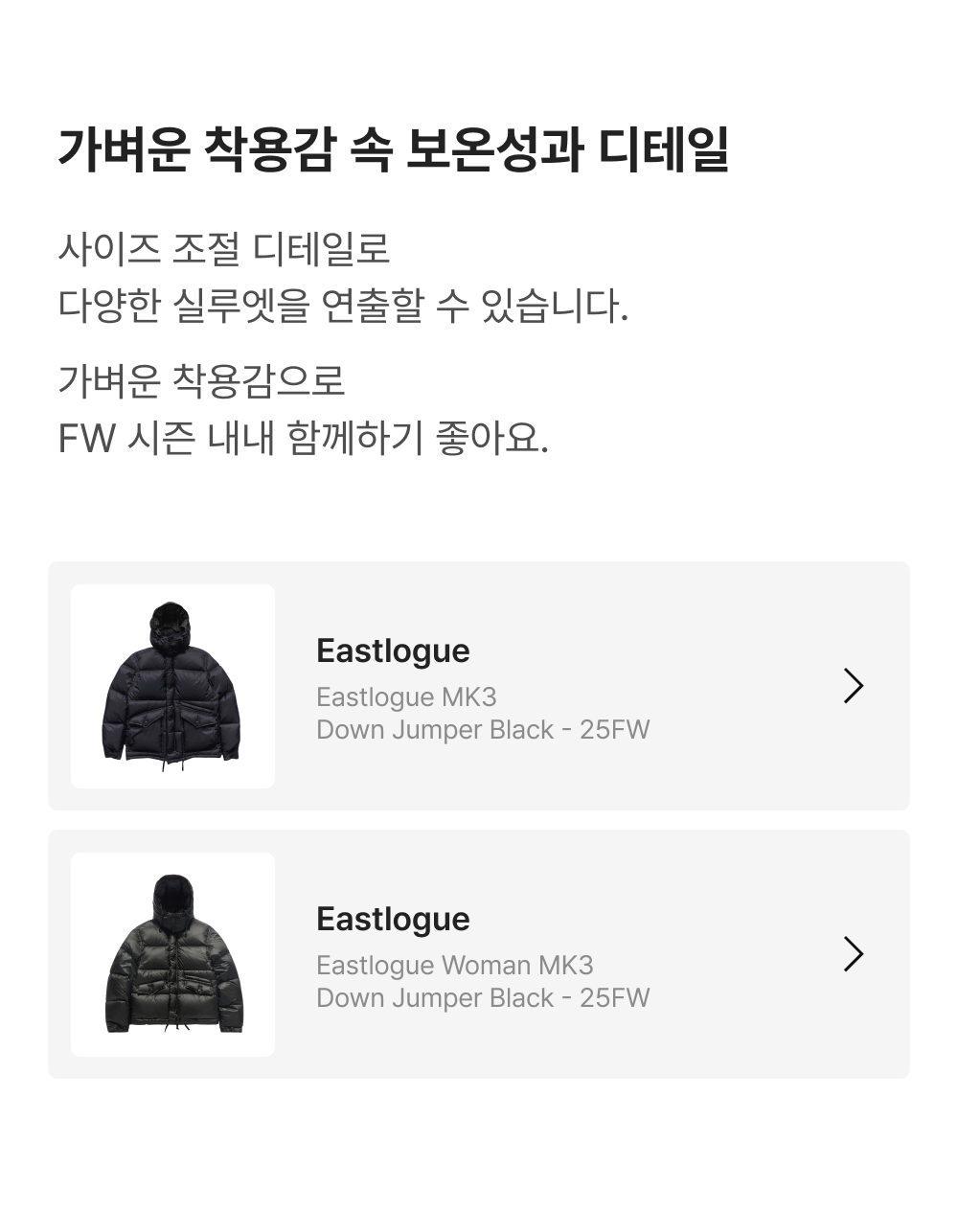 [KREAM 단독] 이스트로그 MK3 다운 점퍼 블랙 - 25FW