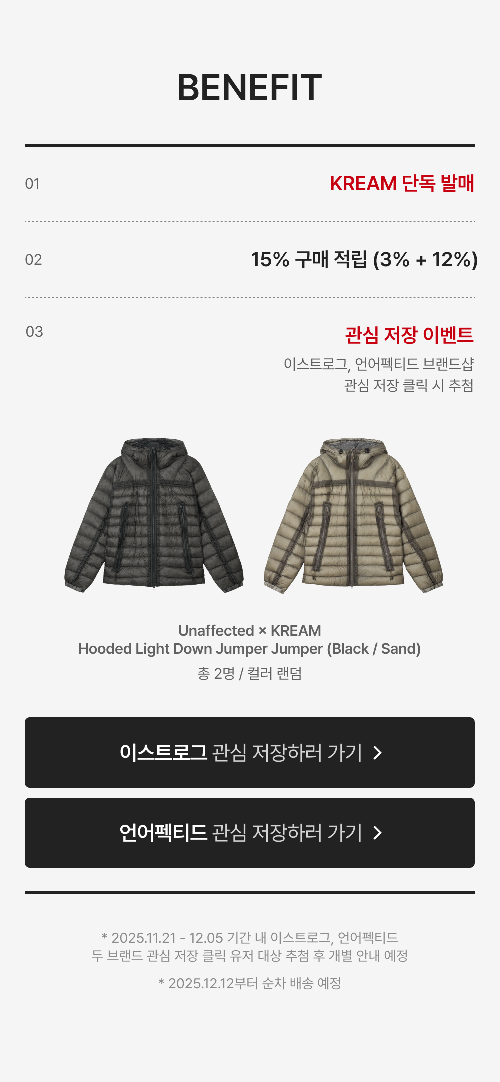 [KREAM 단독] Unaffected X KREAM Hooded Light Down Jumper Black - 25FW