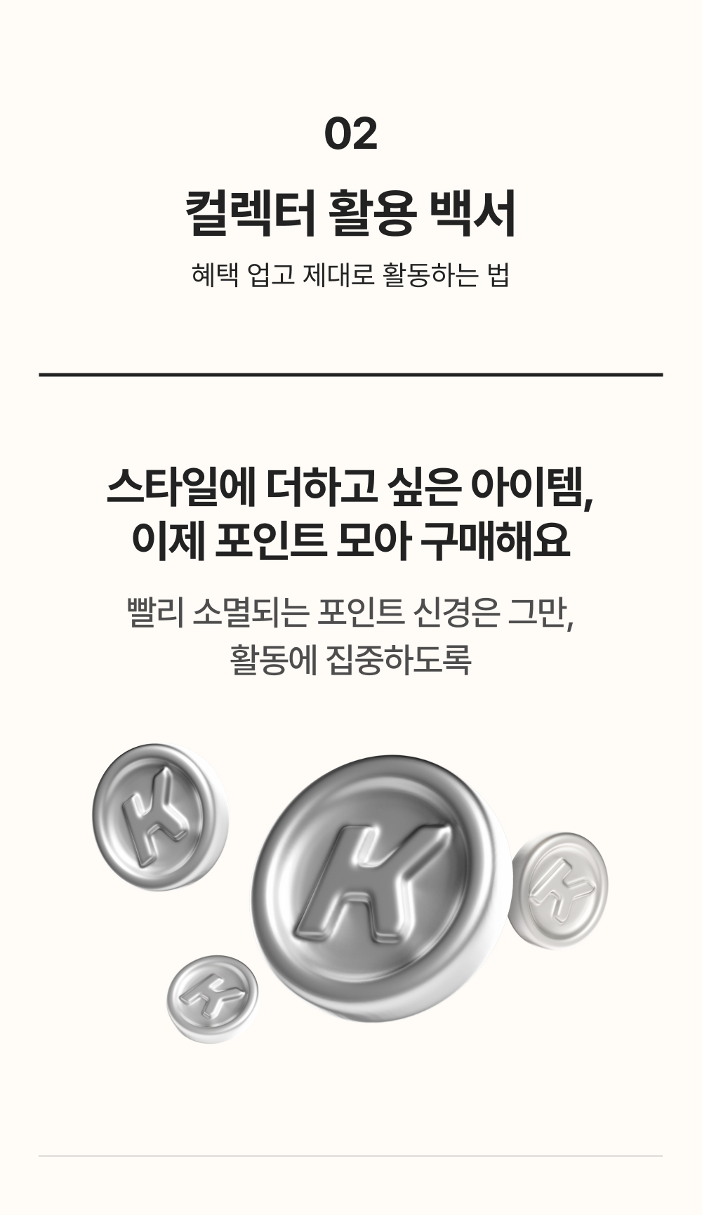 - 활동 포인트는 주 2회 이상, 4달 간 총 80건 업로드 확인된 스타일컬렉터에게 월 소분 지급됩니다.