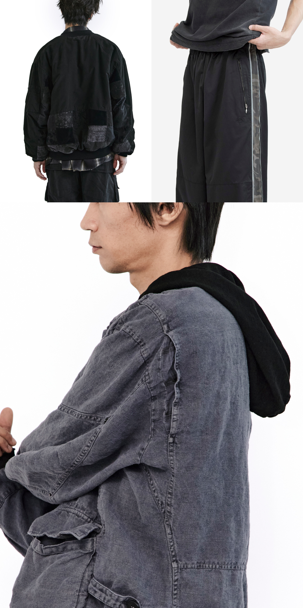 폴리테루 1011 리버시블 패치드 마원 워시드 블랙 (다이드 머드)