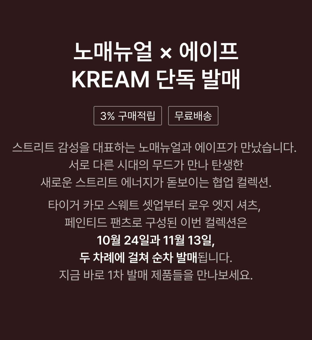 ![[KREAM 단독] 노매뉴얼 x 에이프 스웻팬츠 카모플라주](https://kream-phinf.pstatic.net/MjAyNTExMThfMTY4/MDAxNzYzNDM0NTAxNDg3.RXqQ-EsQtFML-cIe8tplMLeQpNI43CBxneuiO1b5SIkg.QLvT7wzZr50Z8JKG3TiIHiNpRMGZjAvl-XoAamvVeJQg.PNG/a_5934a12835204aac95641bd5212a5f12.png)