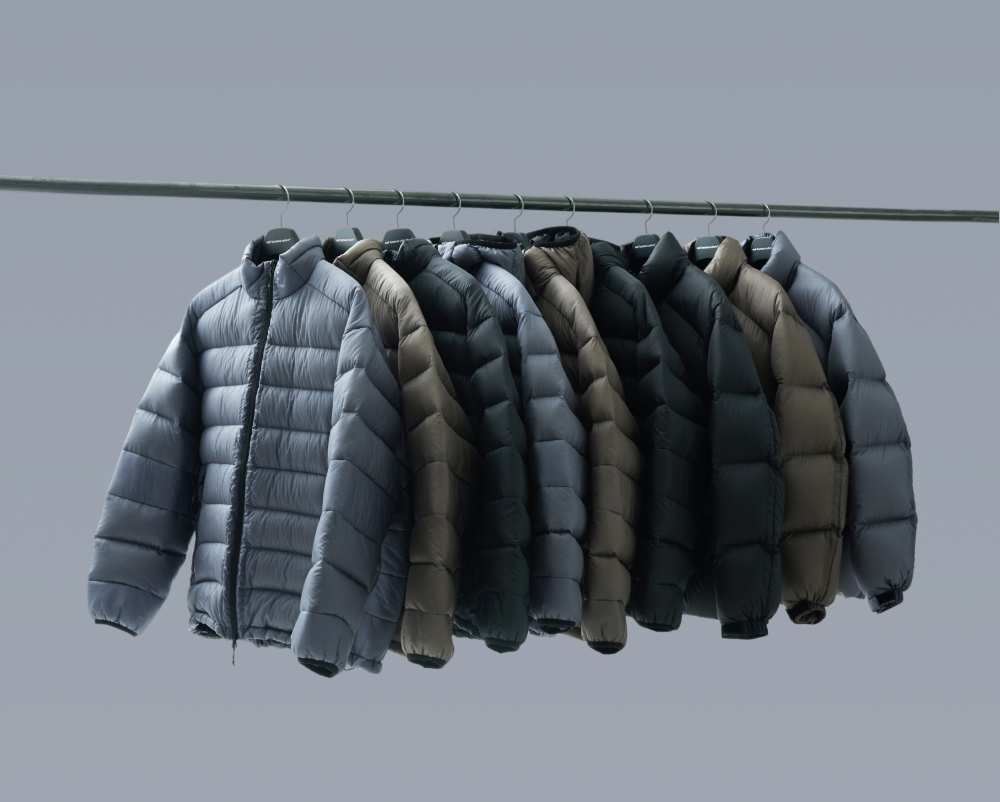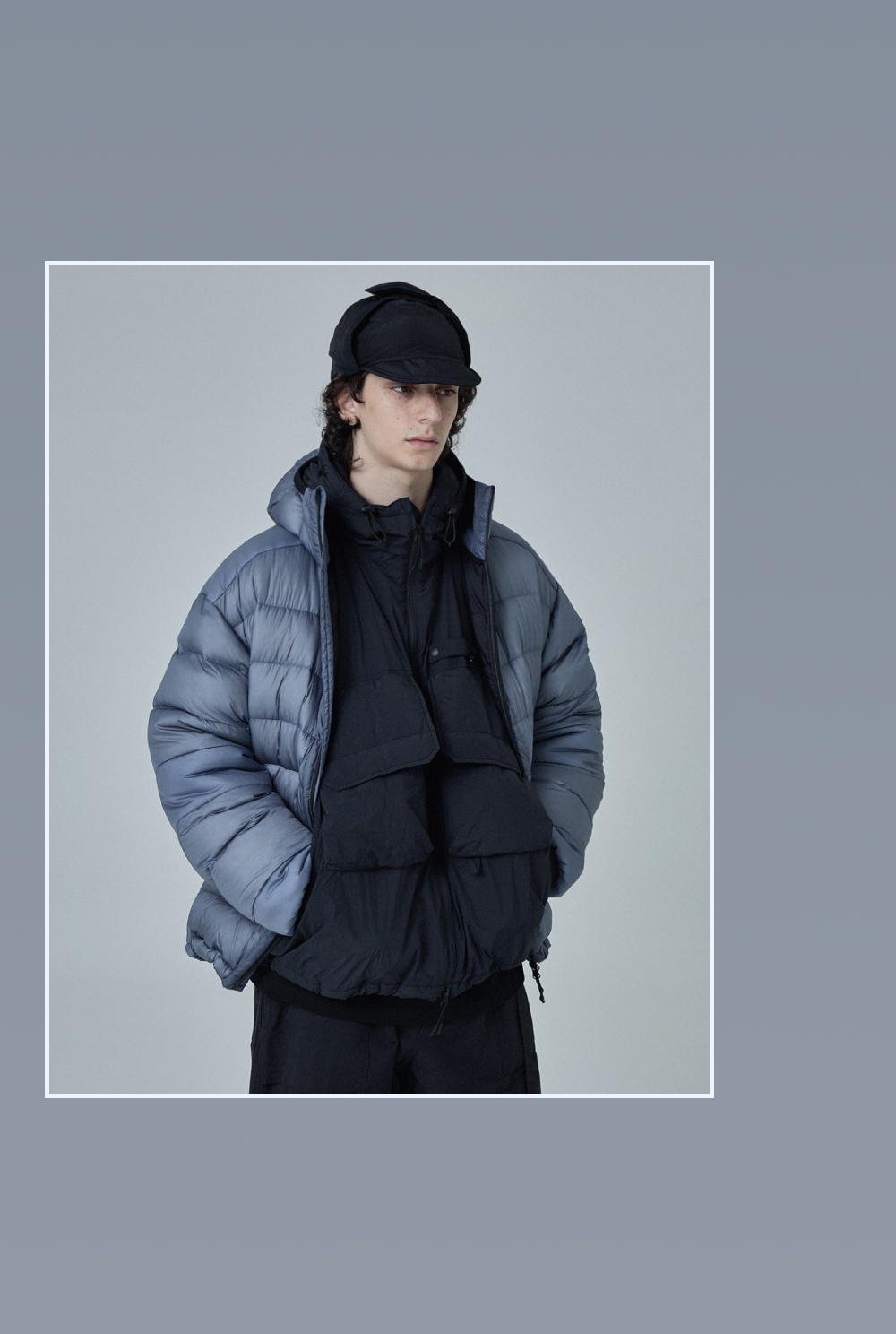 [FW25] moif Helium Down Jacket Sheer Dusty Blue