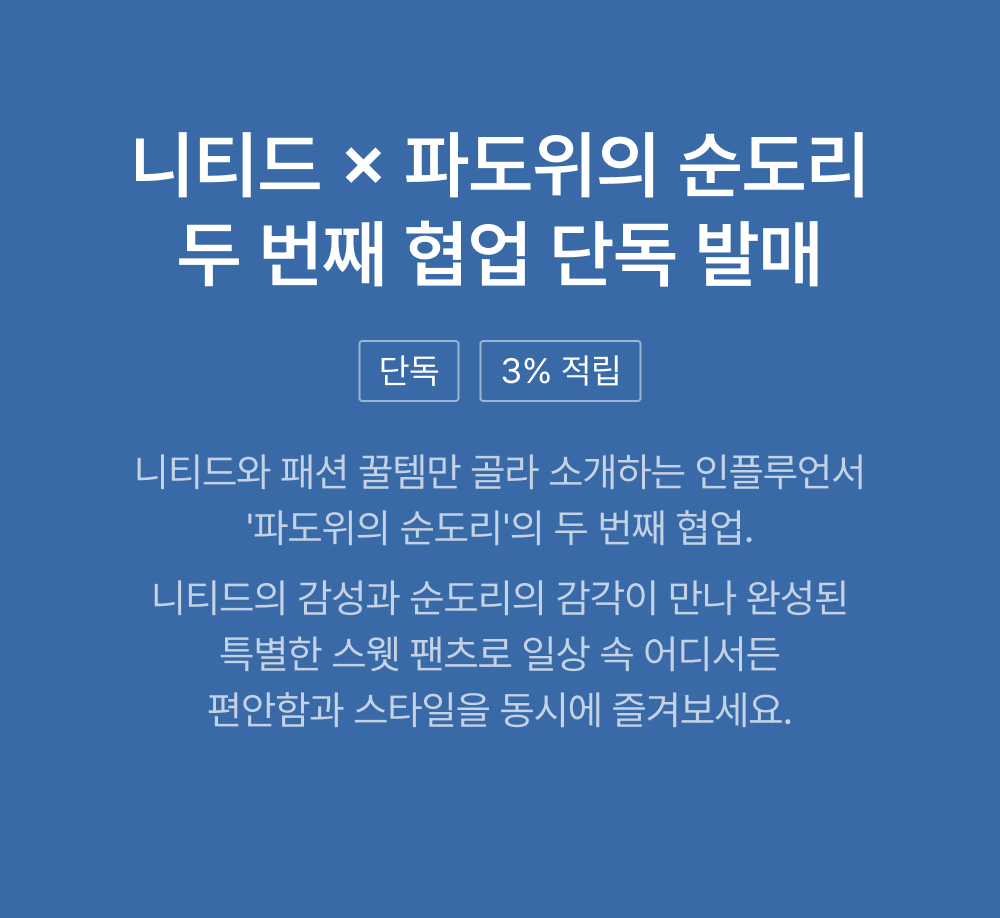 [KREAM 단독] [니티드X순도리] 니티드 썬 피그먼트 트레이닝 팬츠 워싱 블루