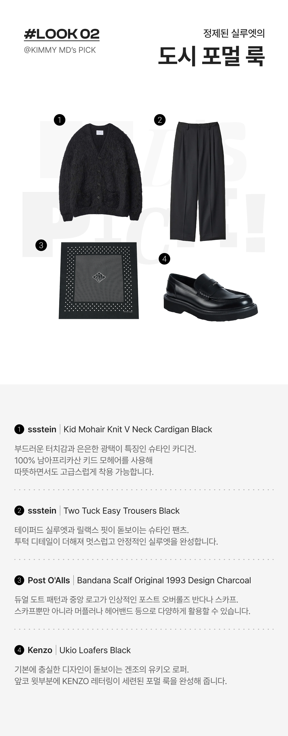 슈타인 울 실크 니트 턱 가디건 블랙 - 25SS