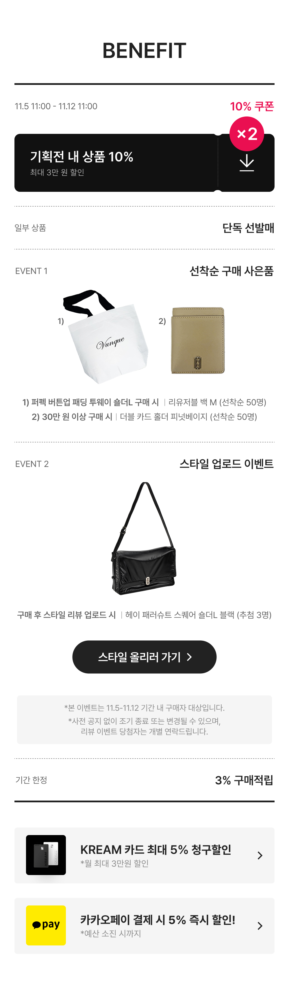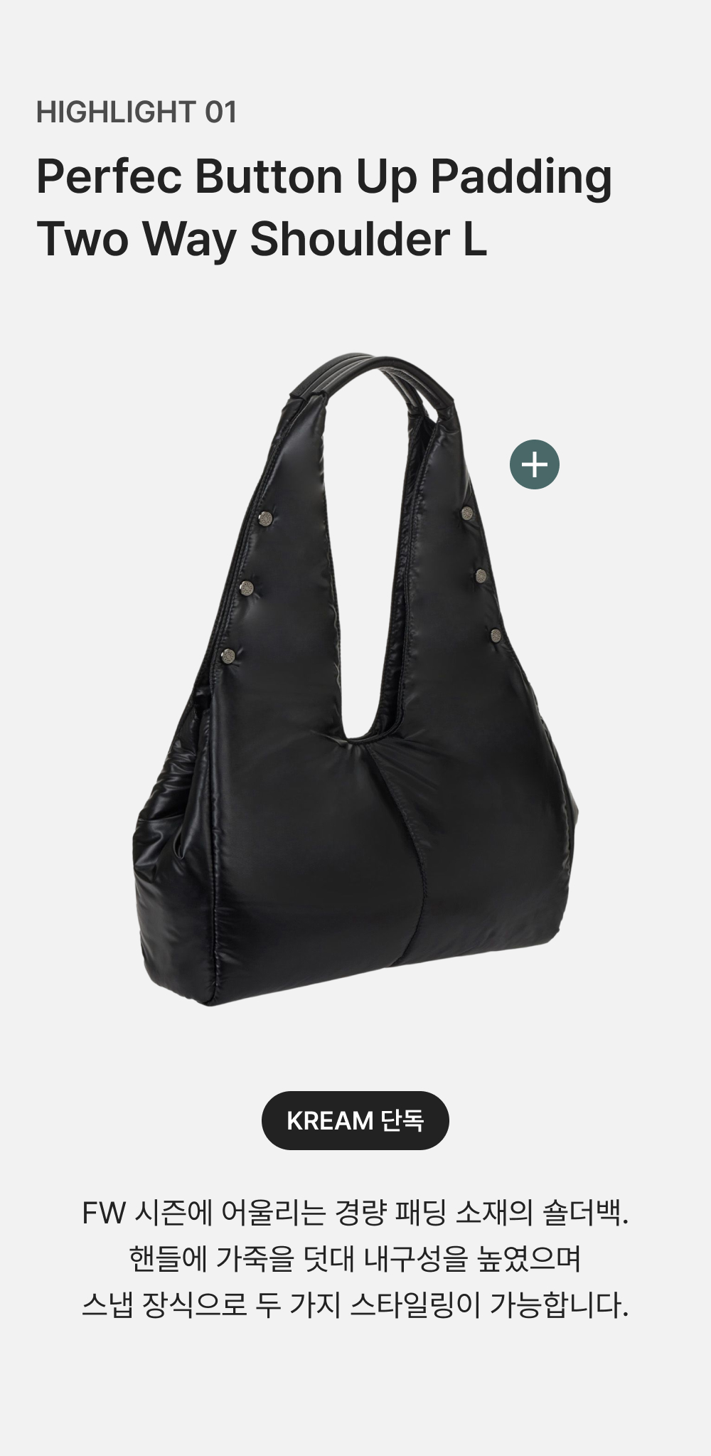 분크 퍼펙 버튼 업 패딩 투웨이 숄더 라지 블랙