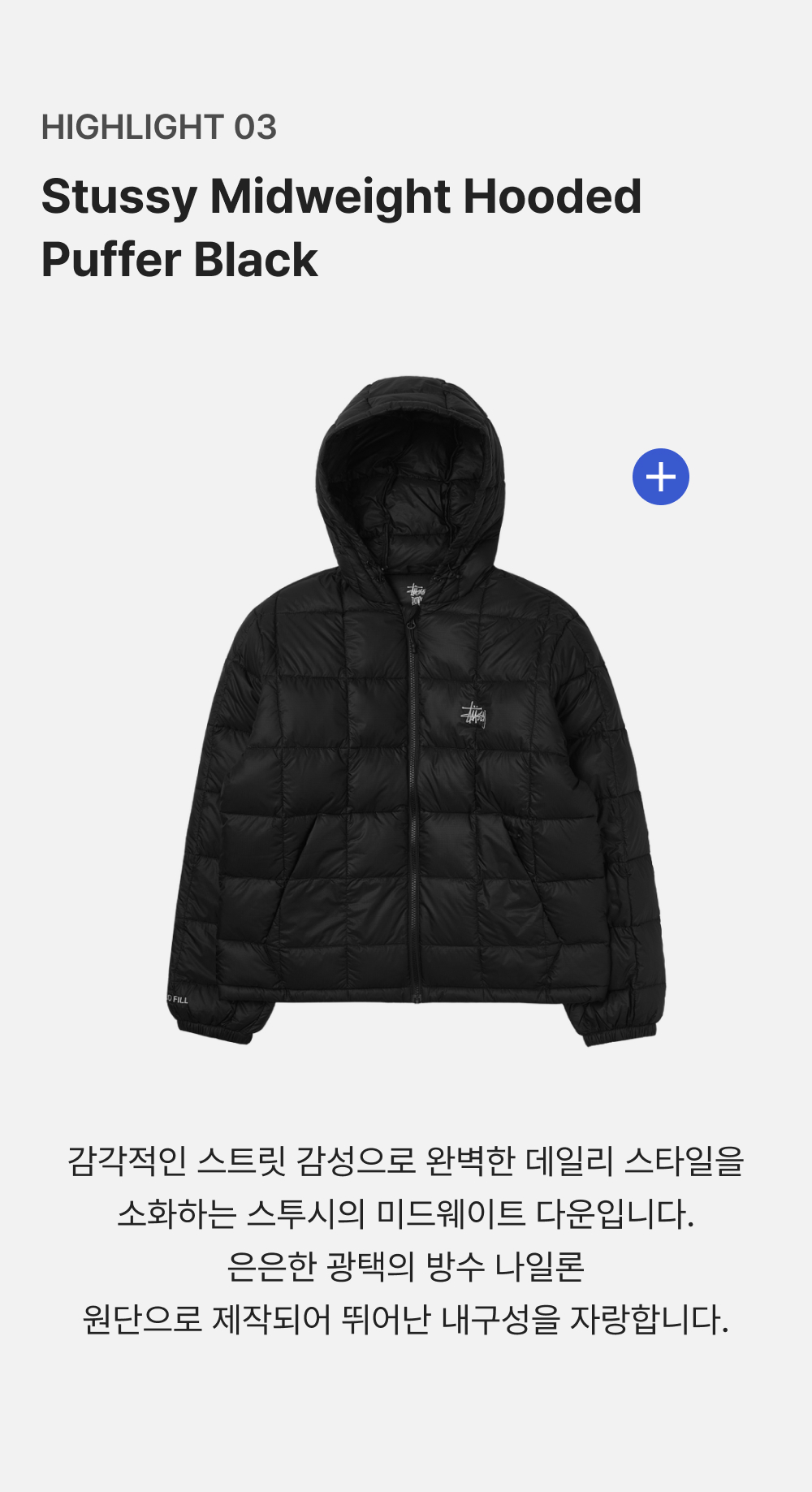 스투시 마이크로 립스탑 다운 파카 제트 블랙