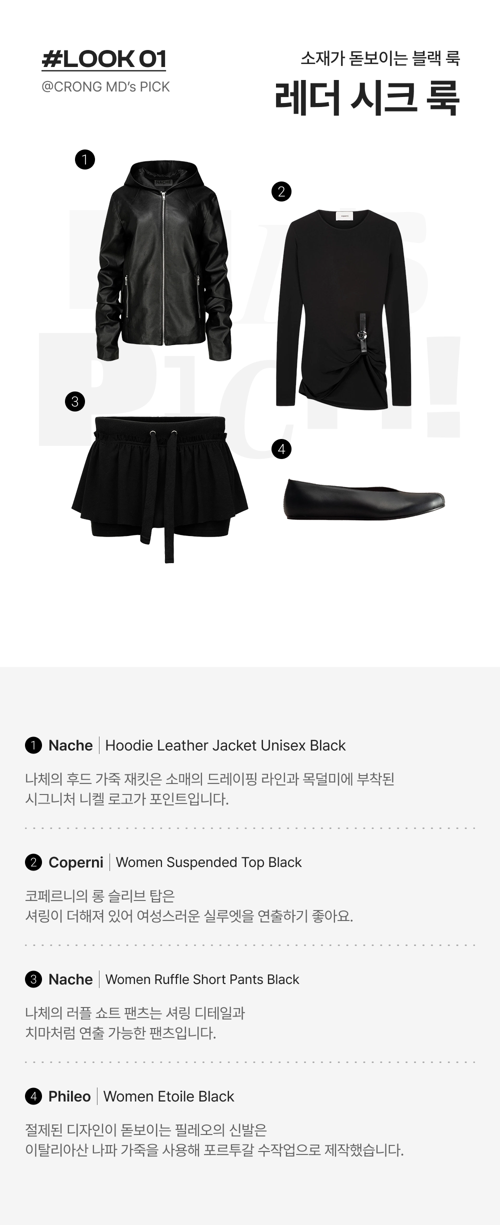 나체 후드 레더 자켓 유니섹스 블랙 - 25FW