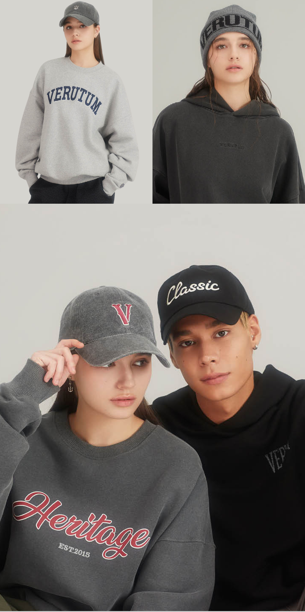 베루툼 하트 로고 컬러 블록 바이오 워싱 캡 차콜 블랙