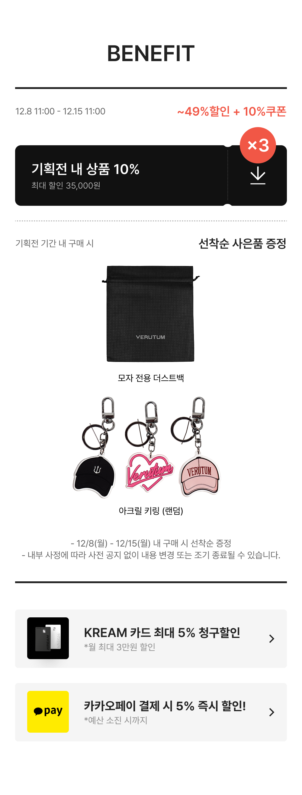 베루툼 VRT 이니셜 투 톤 캡 크림 블랙