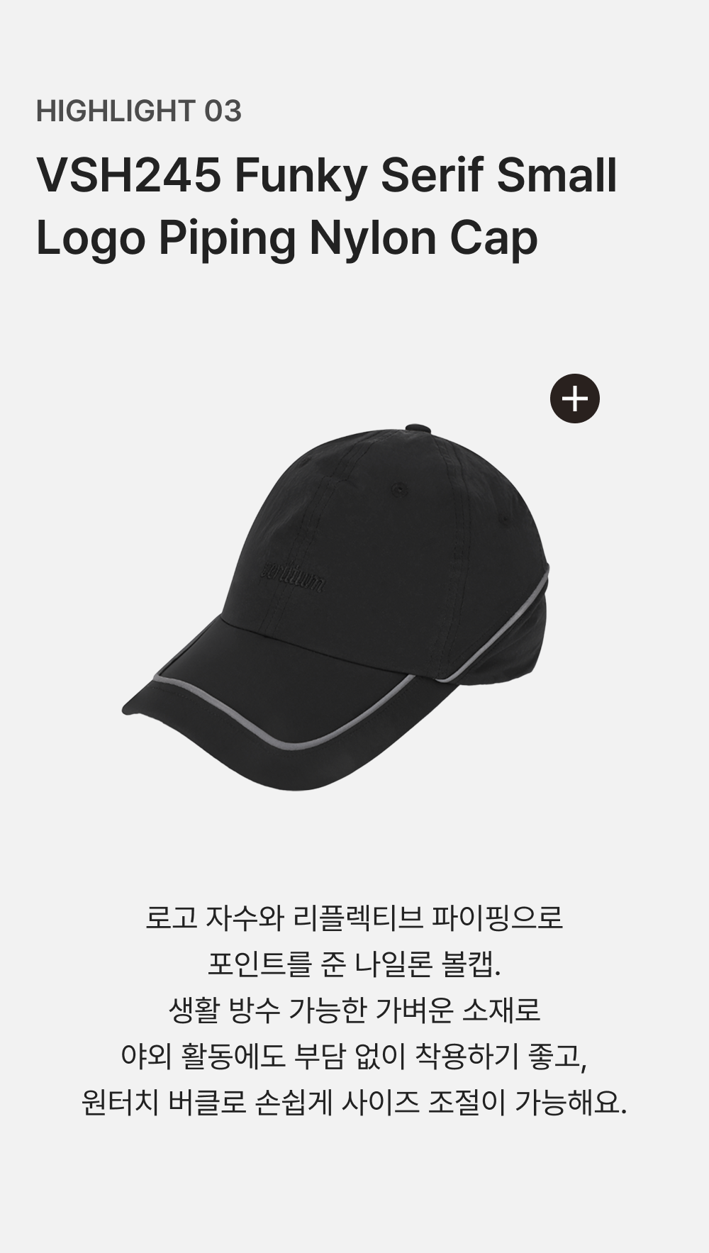 베루툼 펑키 세리프 스몰 로고 파이핑 나일론 캡 블랙