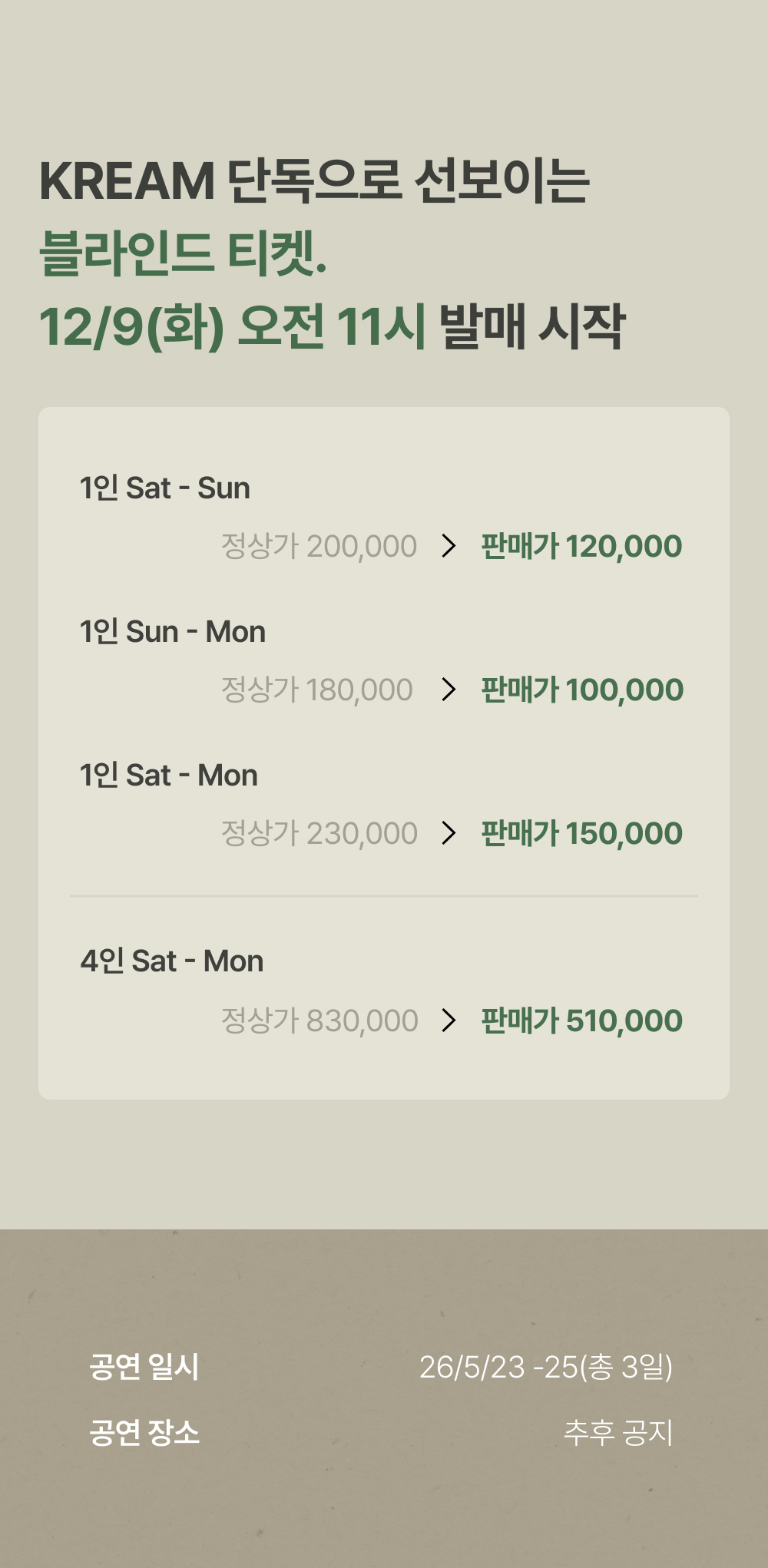 - 티켓은 1인 최대 4매까지 예매 가능하며, 초과 구매 시 사전 고지 없이 취소될 수 있습니다.