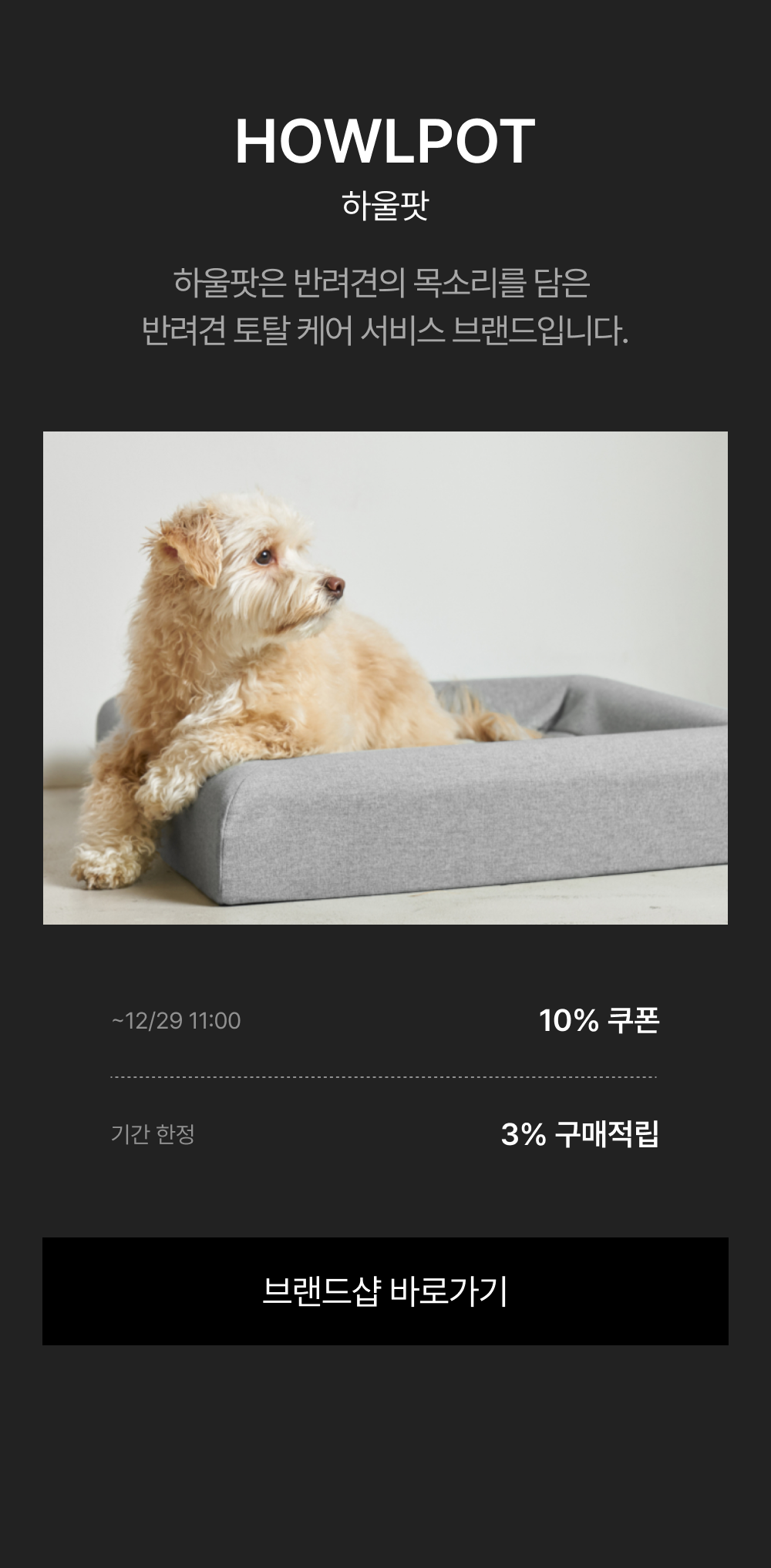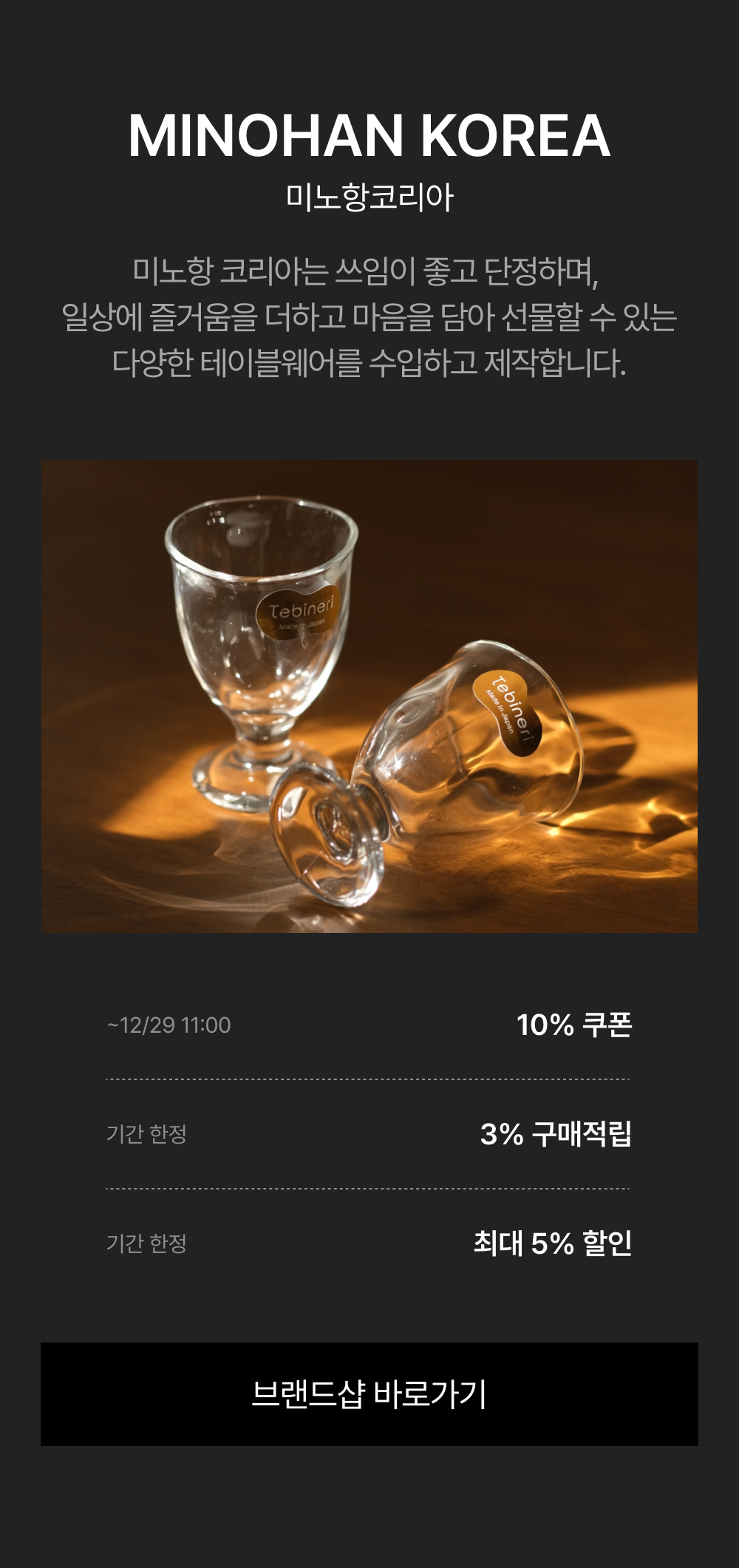- 본 쿠폰은 해당 페이지 내 브랜드 상품에 한해 최소 구매 금액 제한 없이 적용 가능하며, 일부 상품은 제외될 수 있습니다.