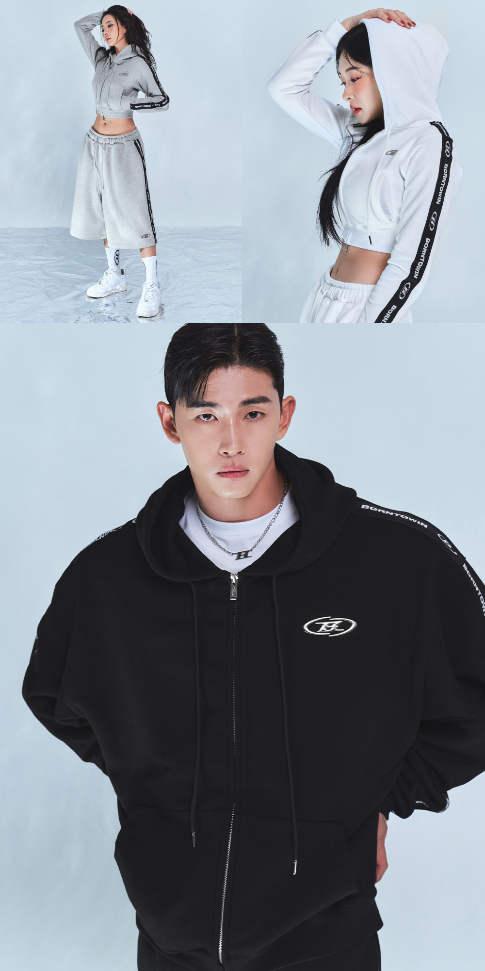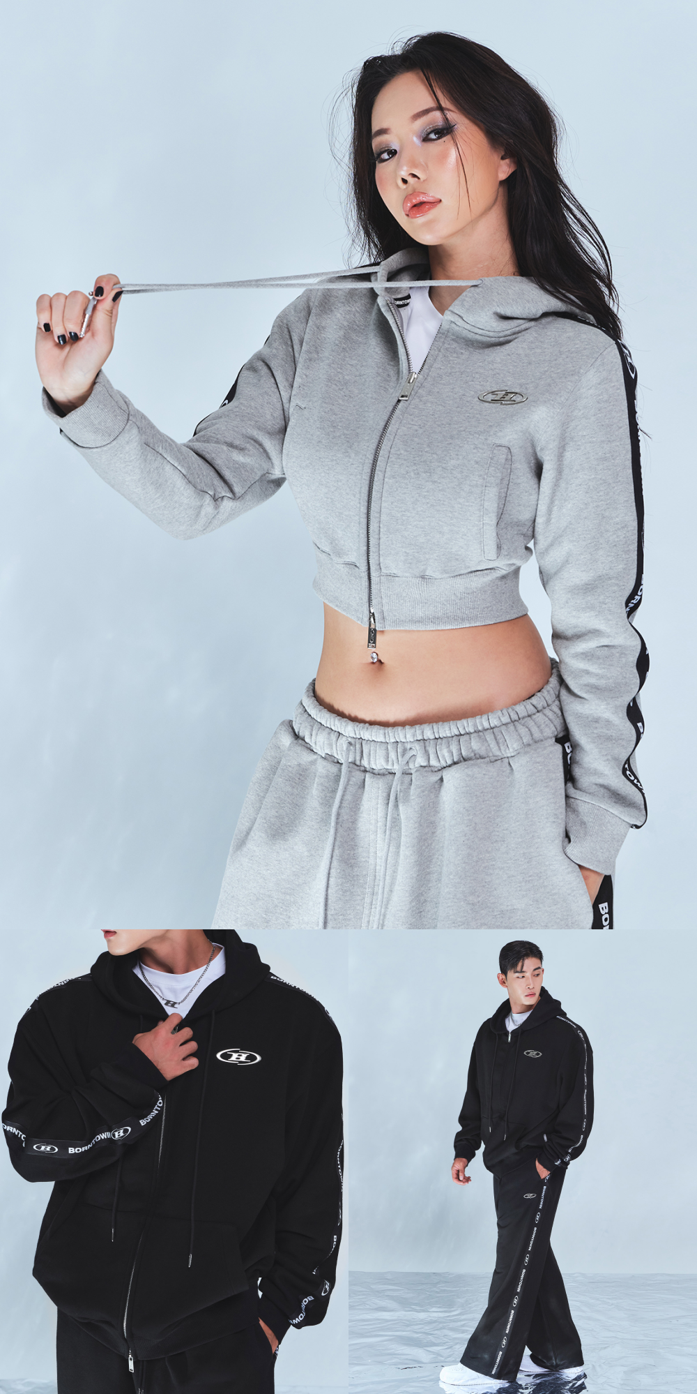 본투윈 크롬 B 트랙라인 후디 집업 멜란지그레이