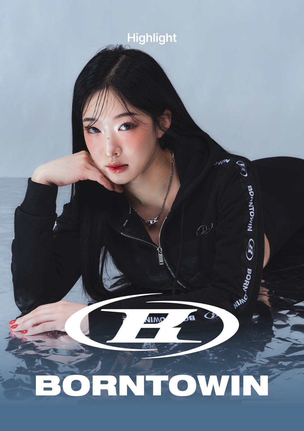 본투윈 우먼 실버 B 크롭 후디 블랙