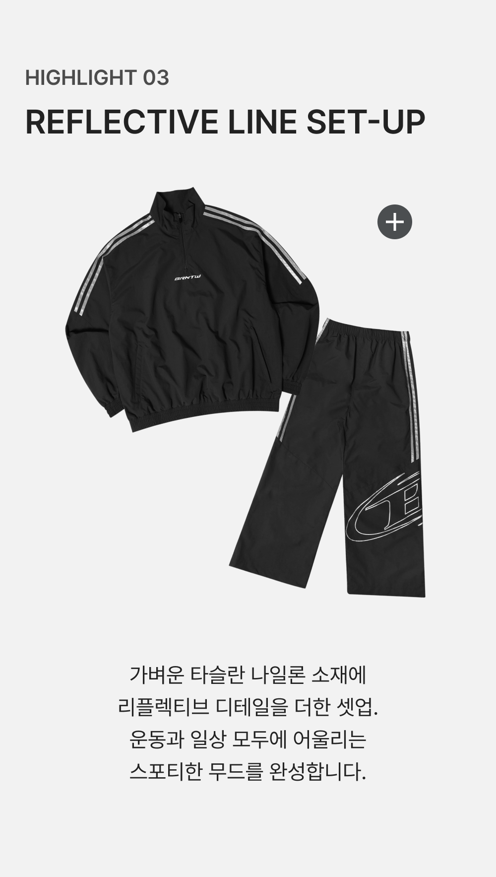 본투윈 리플렉티브 라인 크롭 윈드 브레이커 블랙