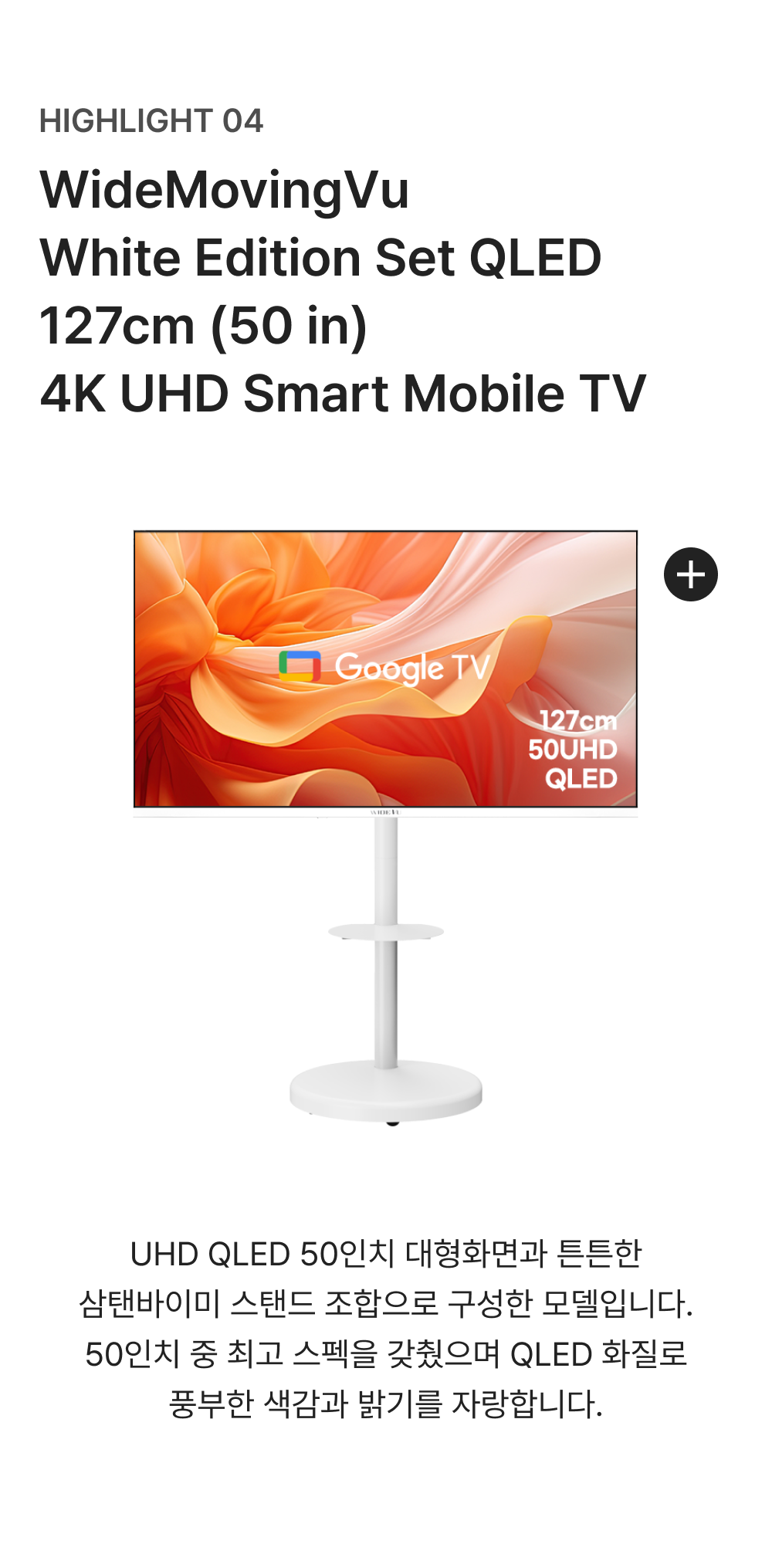 와이드뷰 와이드무빙뷰 화이트에디션 대형 삼탠바이미 세트 QLED 127cm(50인치) 4K UHD 스마트 이동식 TV