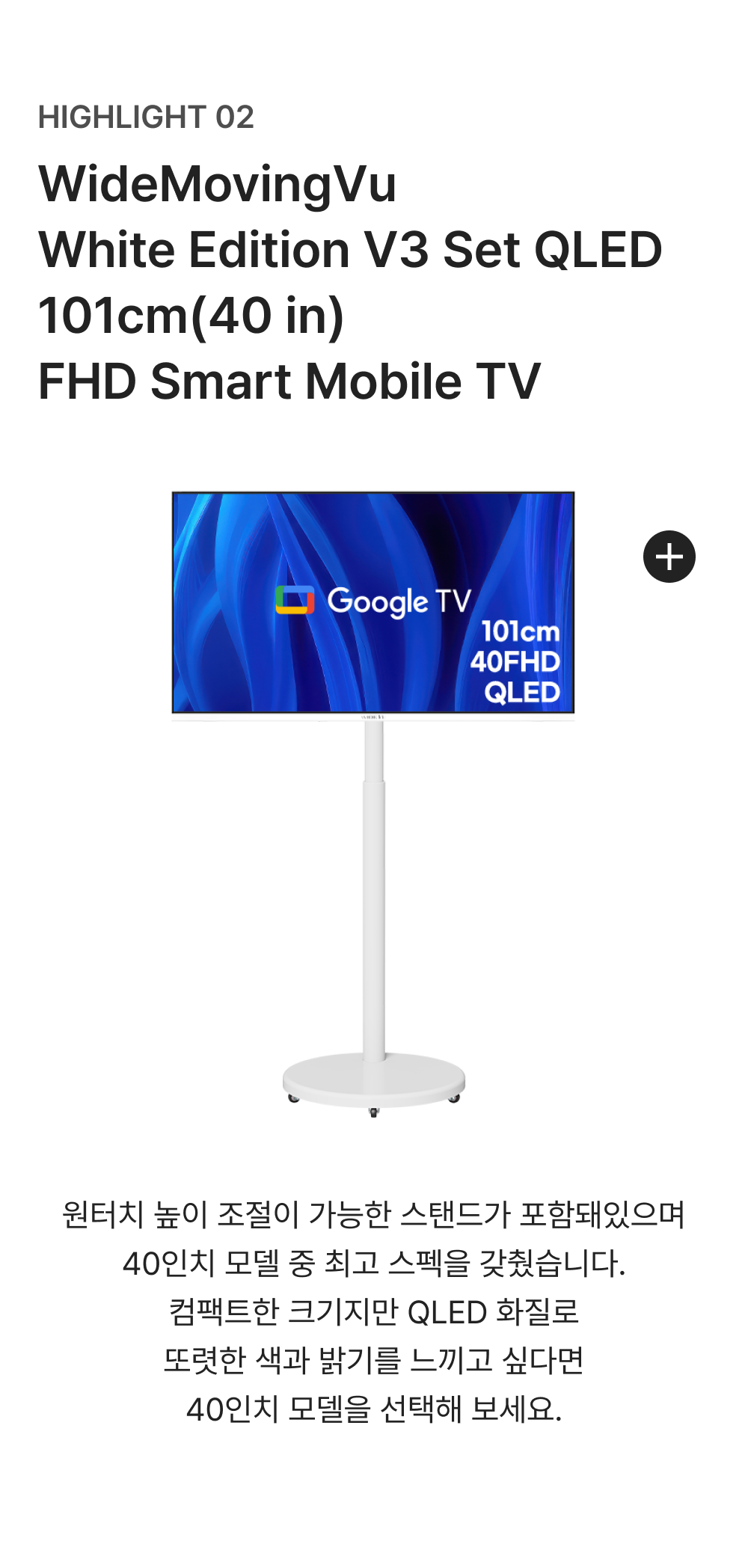 와이드뷰 와이드무빙뷰 화이트에디션 삼탠바이미 V3 세트 101cm(40인치) FHD 스마트 이동식 TV