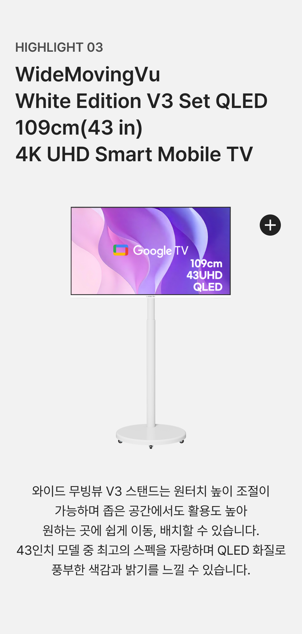 와이드뷰 와이드무빙뷰 화이트에디션 삼탠바이미 V3 세트 109cm(43인치) 4K UHD 스마트 이동식 TV