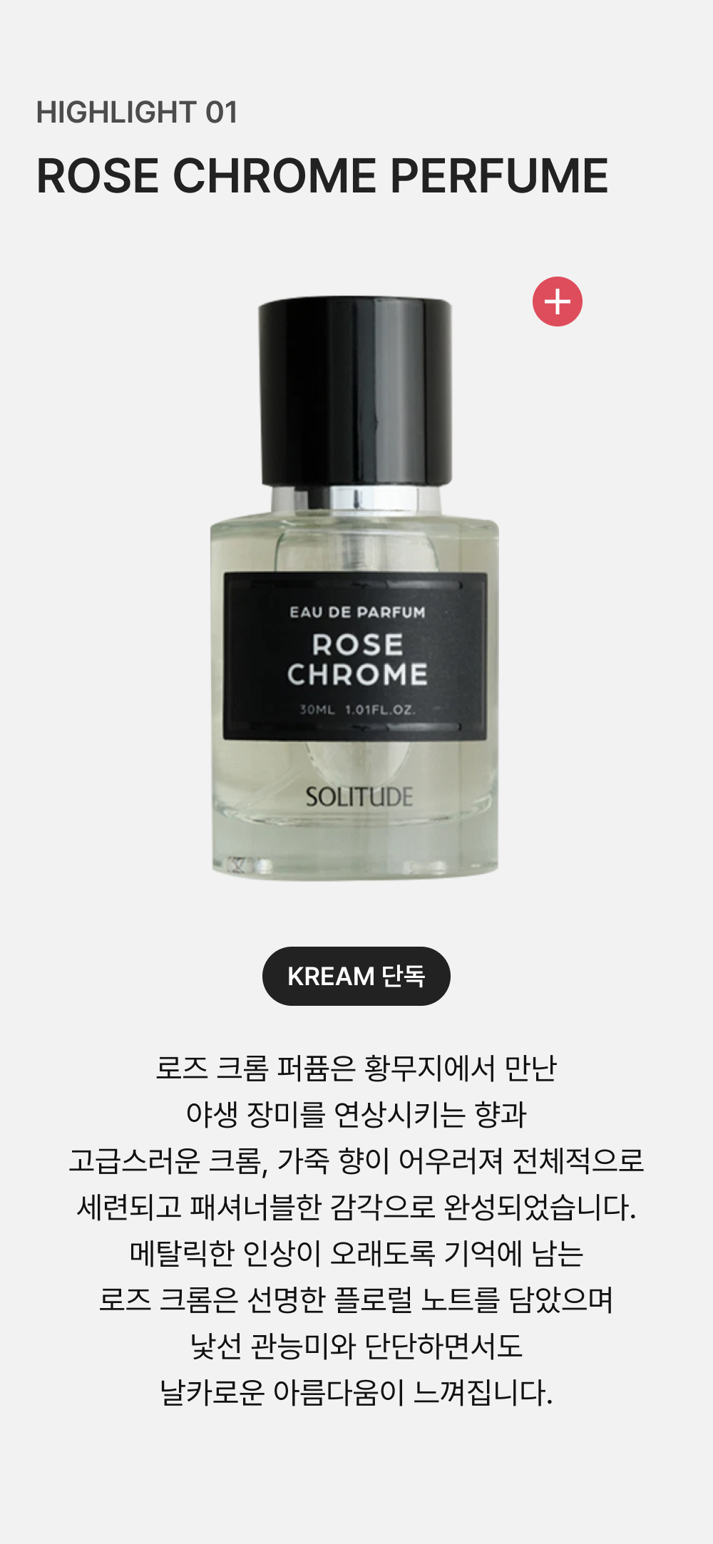 ![[KREAM 단독] 솔리튜드 로즈 크롬 30ml - 26SS](https://kream-phinf.pstatic.net/MjAyNTEyMThfMjA1/MDAxNzY2MDM5NTc3NTk5.XbUVv4wrodcek_yPi-Z52710eO7Uw-rVbKJiX52f2aQg.ZIv4wKRq2KgZohqZBWcL_k_HZaVpKKWIehlv3TR4jhIg.PNG/p_0f55544b23324c7b87f84601a6064d22.png)