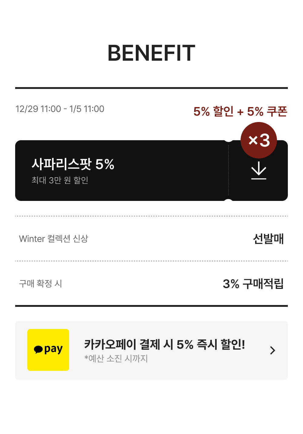 - 쿠폰은 발급 기간 내 계정 당 3회 다운 가능합니다.