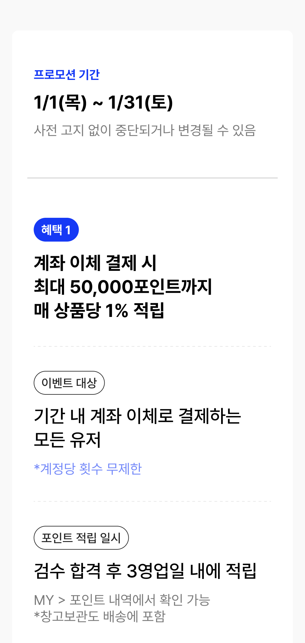 [~26/01/06(화) 오전 11시] 3% 적립