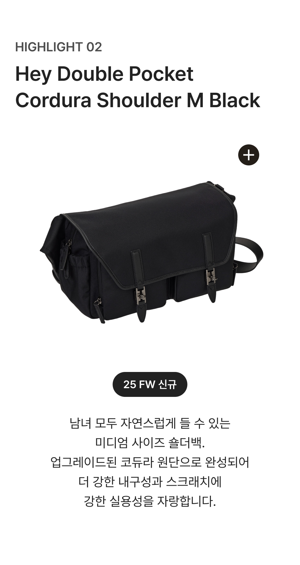 [6%적립] 분크 헤이 더블 포켓 코듀라 숄더 미듐 블랙