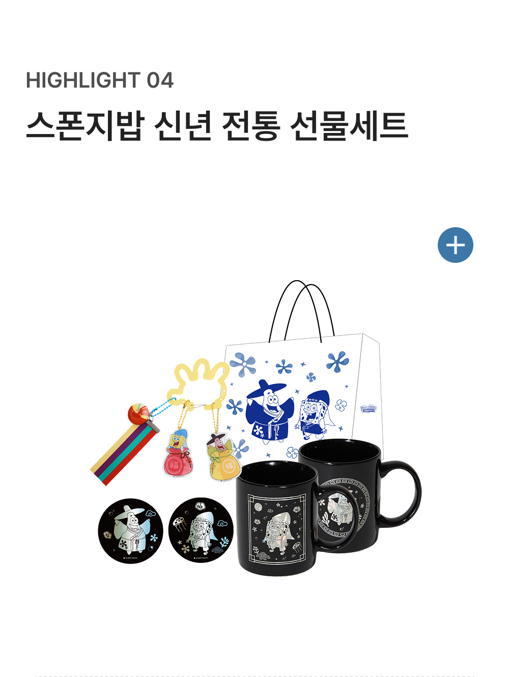 댄꼼마 x 스폰지밥 스폰지밥 & 뚱이 청화백자 대접 접시세트