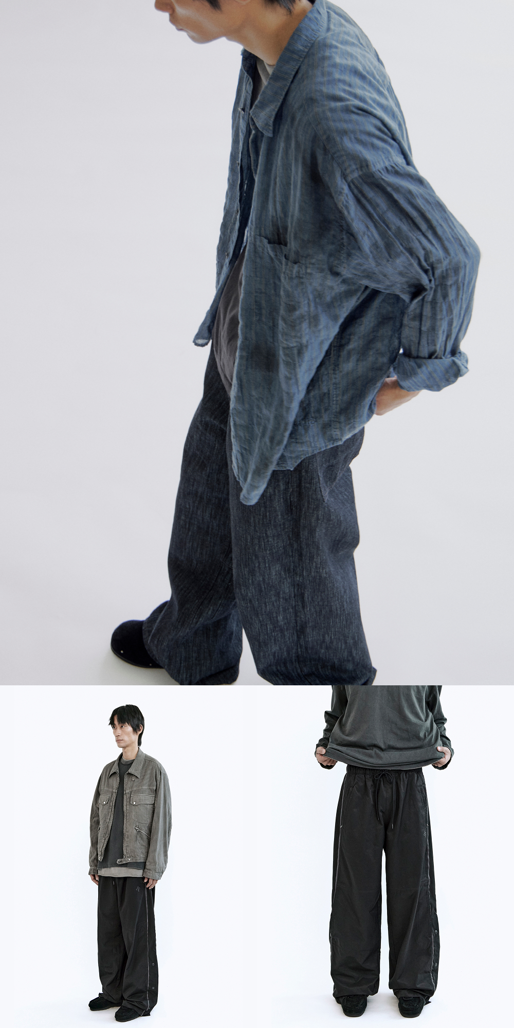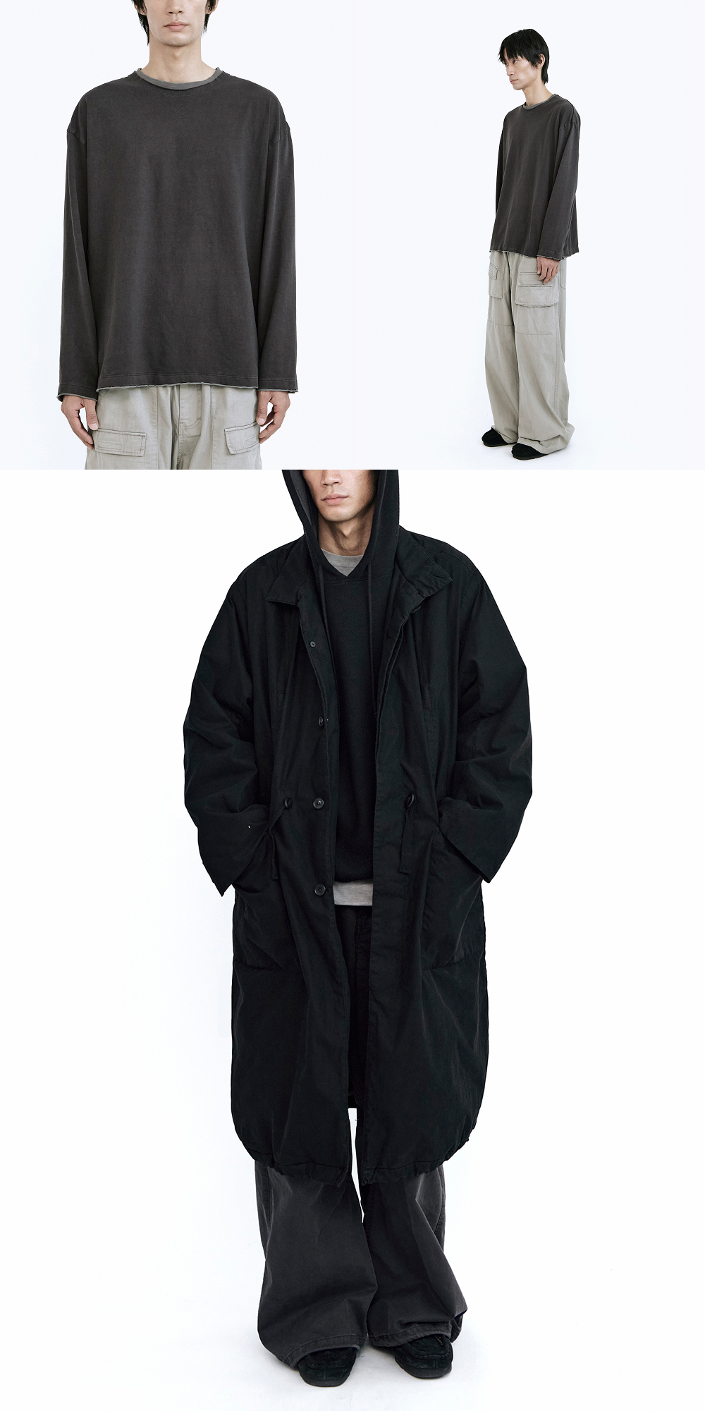 폴리테루 레이어드 롱슬리브 차콜 + 그레이