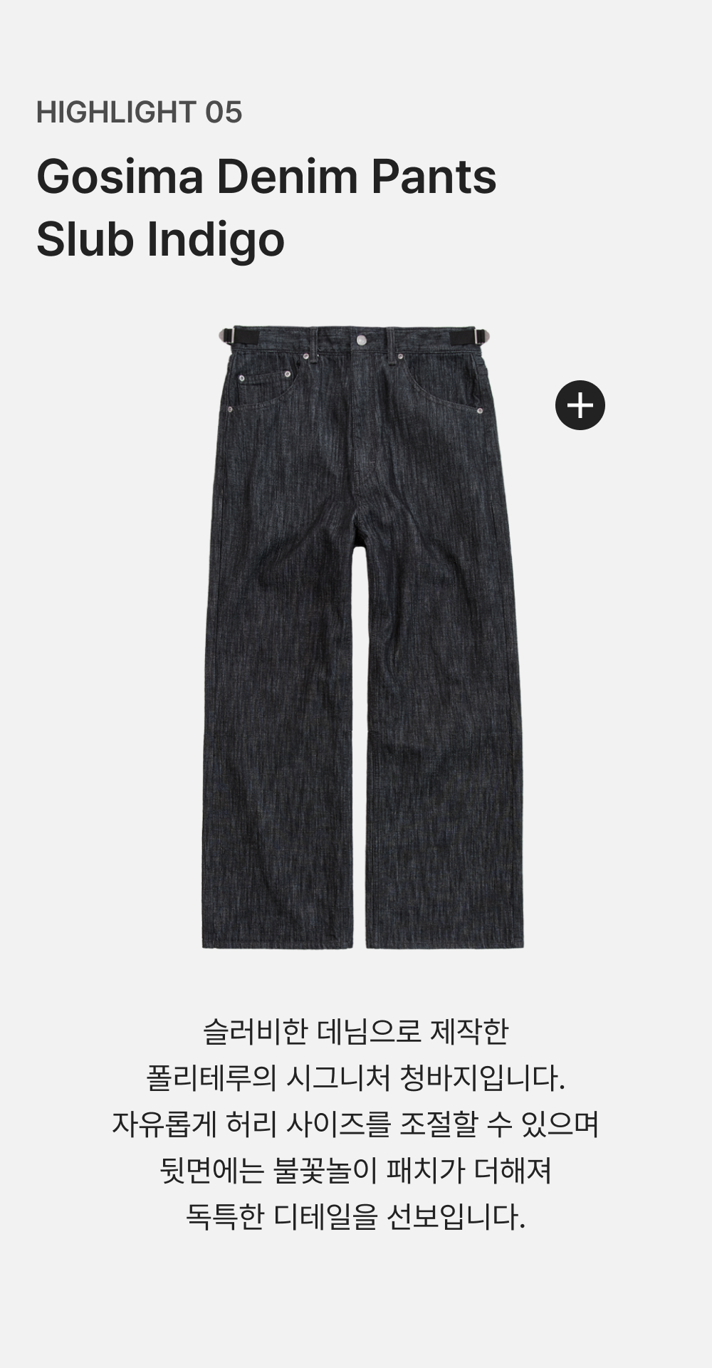 폴리테루 고시마 데님 팬츠 슬럽 인디고