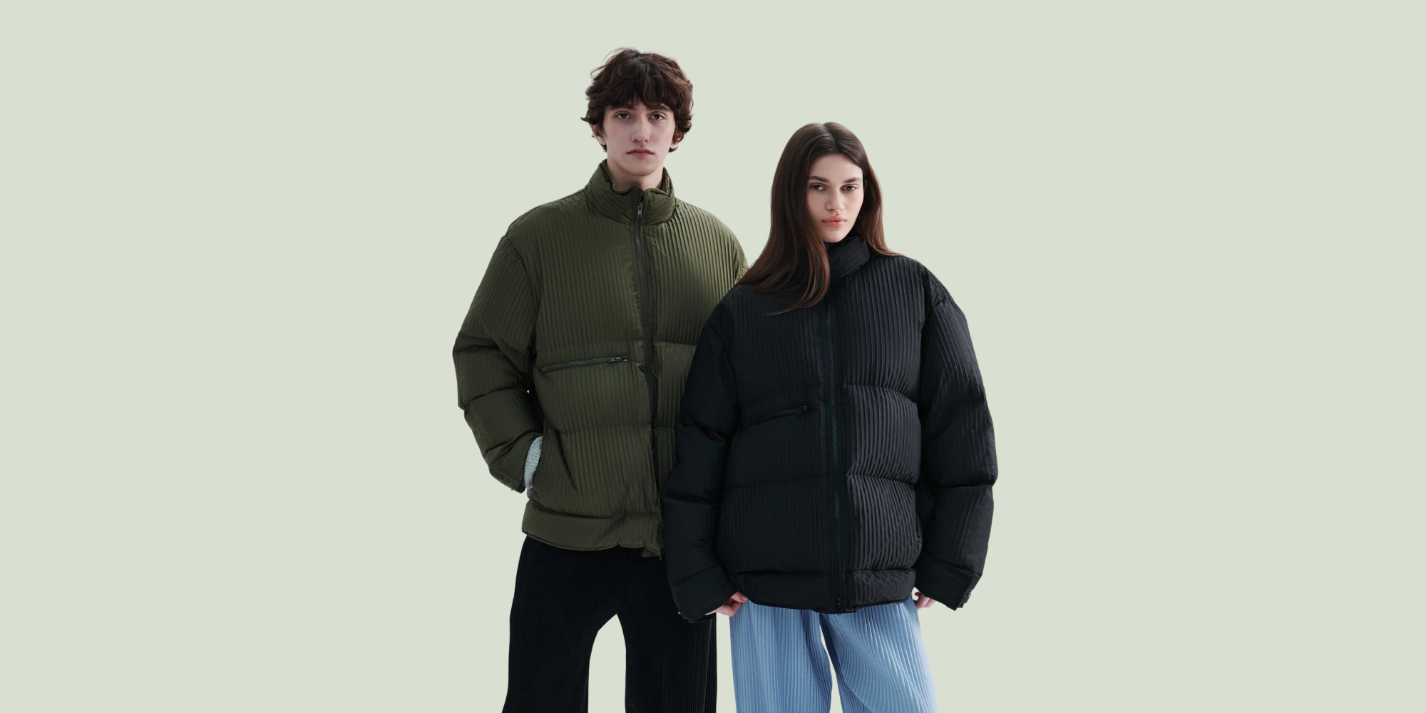 Monplisse Unisex Wave Quilted Pleats Padded Jacket (Brown)