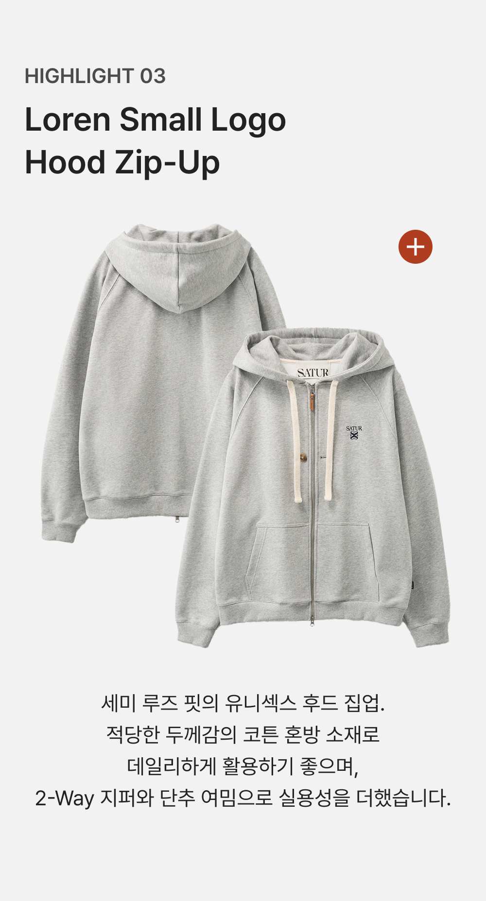 SATUR Loren Small Logo Hood Zip-up Melange Gray