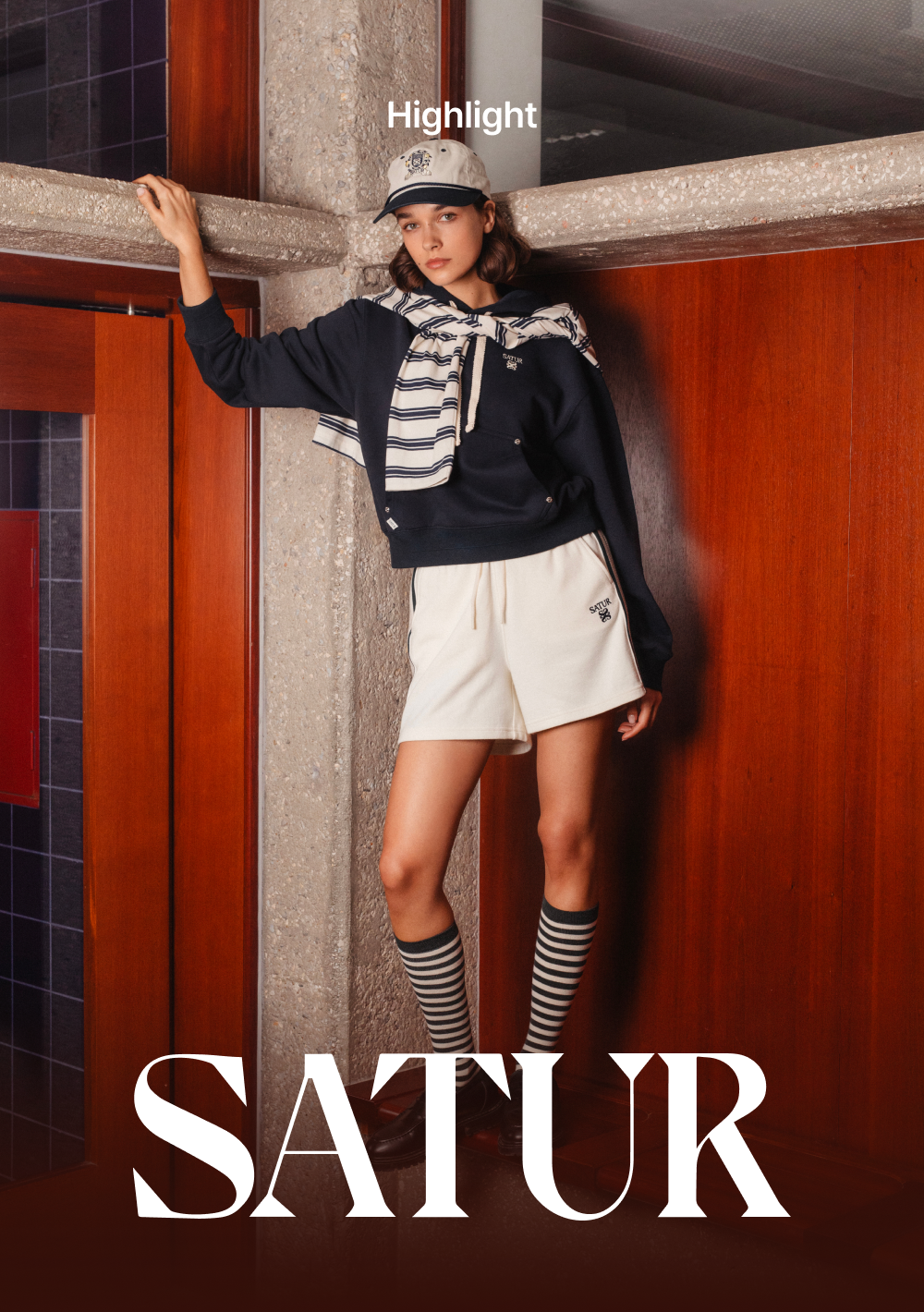 SATUR Loren Small Logo Hood Zip-up Melange White