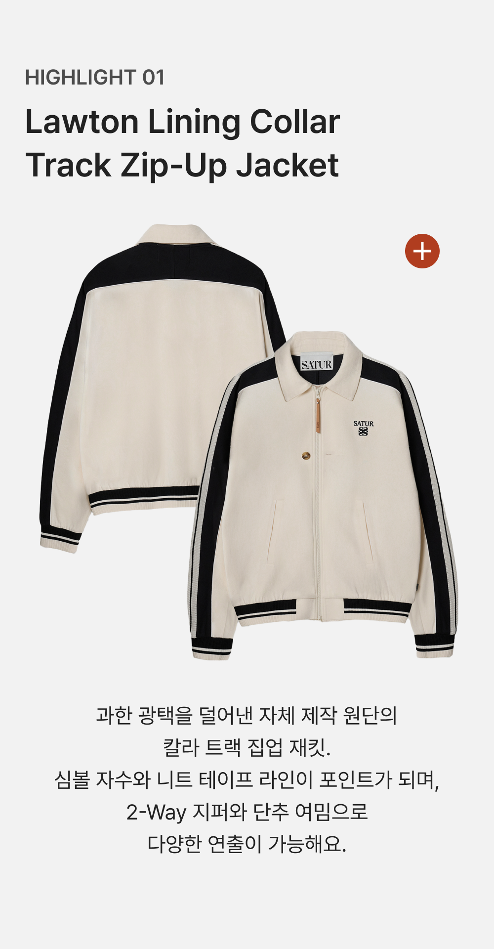 SATUR W Lawton Lining Collar Track Zip-up Jacket Cream Black