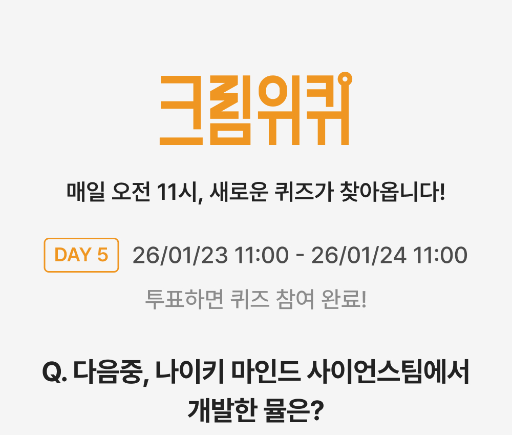 - 퀴즈는 매일 오전 11시 오픈되며, 제출 후 수정이 불가 합니다.