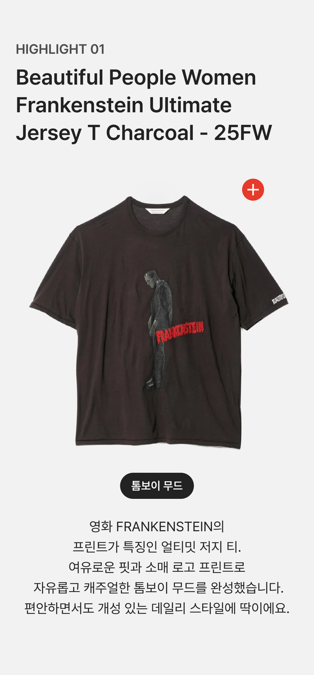 뷰티풀피플 우먼 프랑켄슈타인 얼티밋 저지 티 차콜 - 25FW