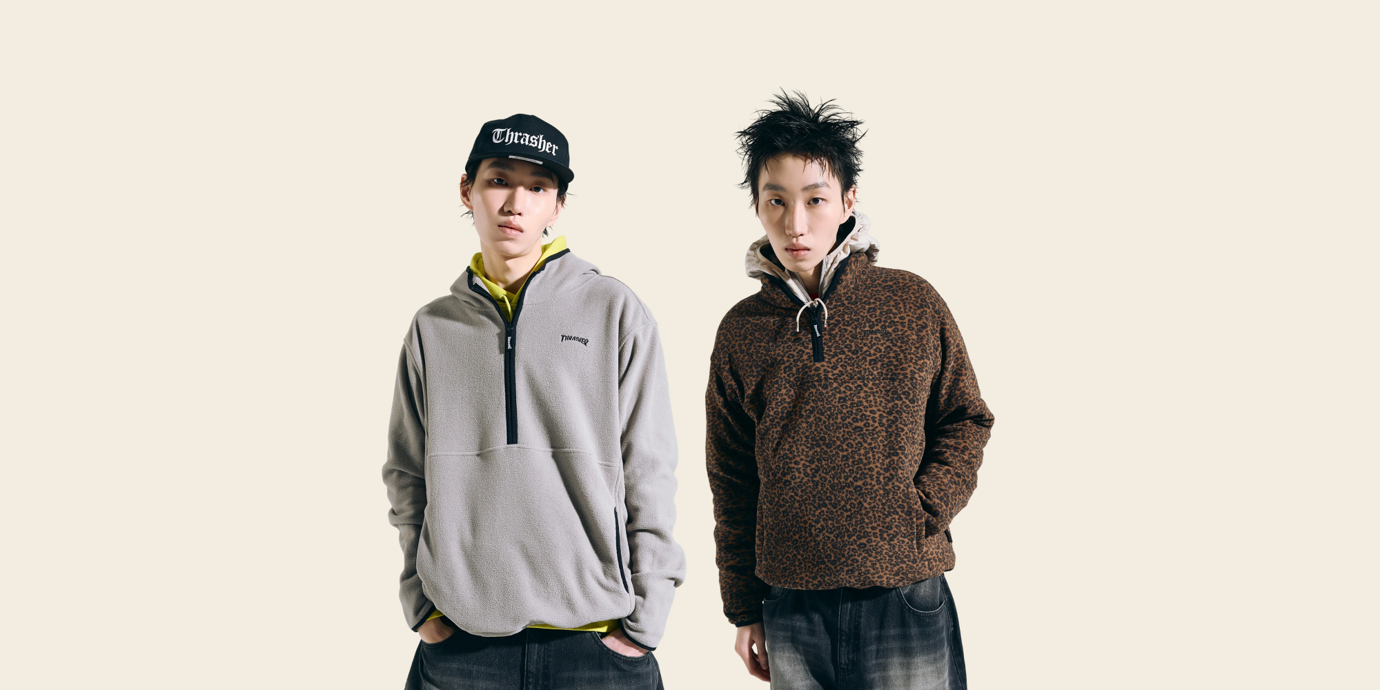THRASHER Dia Fleece Half Zip-Up Pullover Leopard