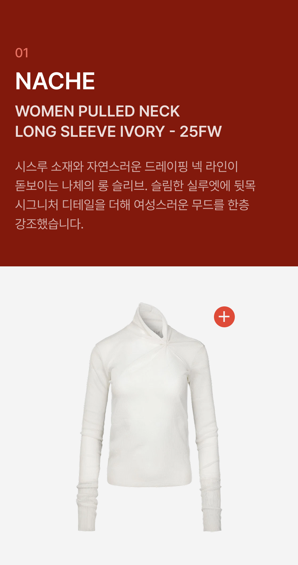 나체 우먼 풀드 넥 롱슬리브 아이보리 - 25FW