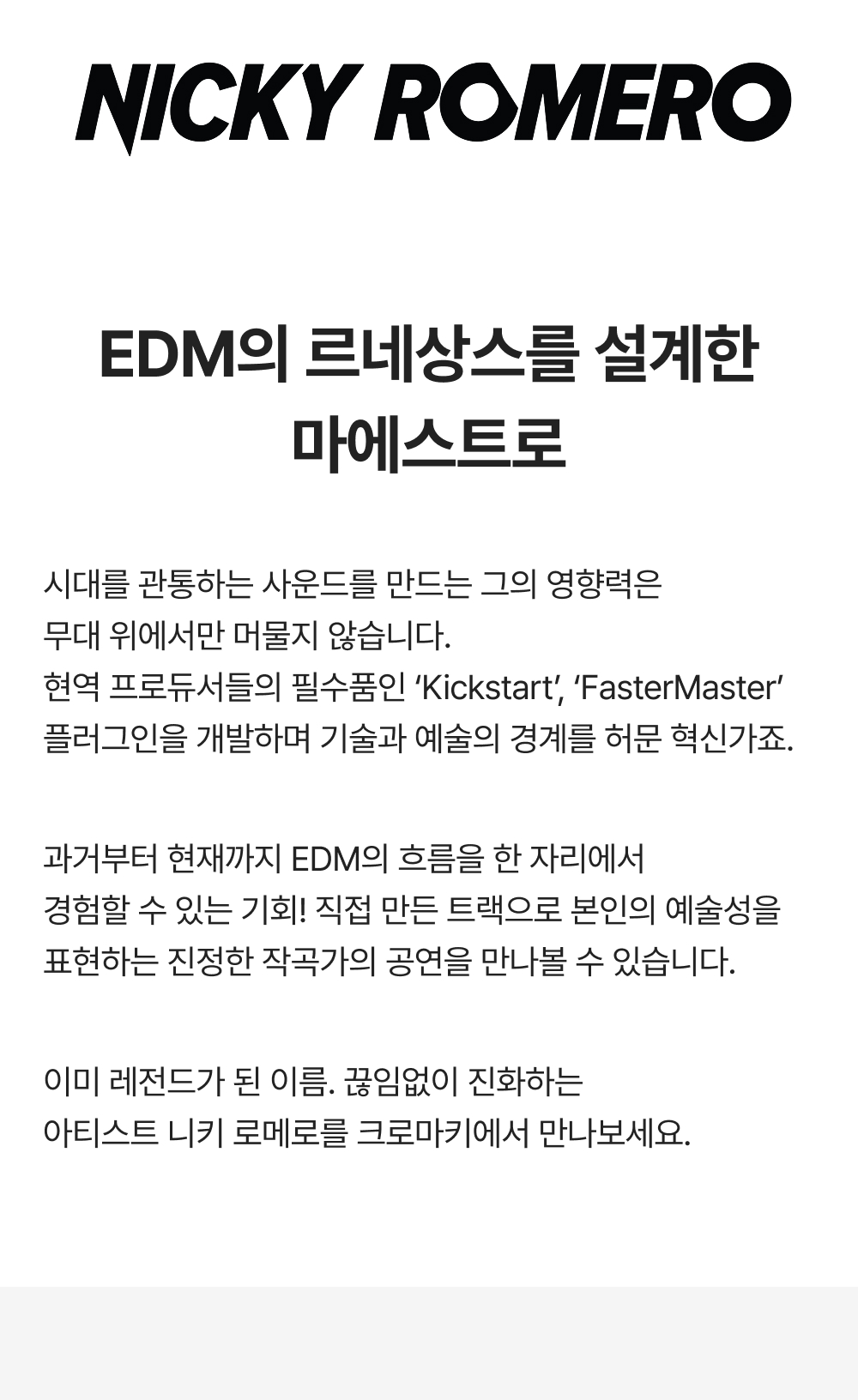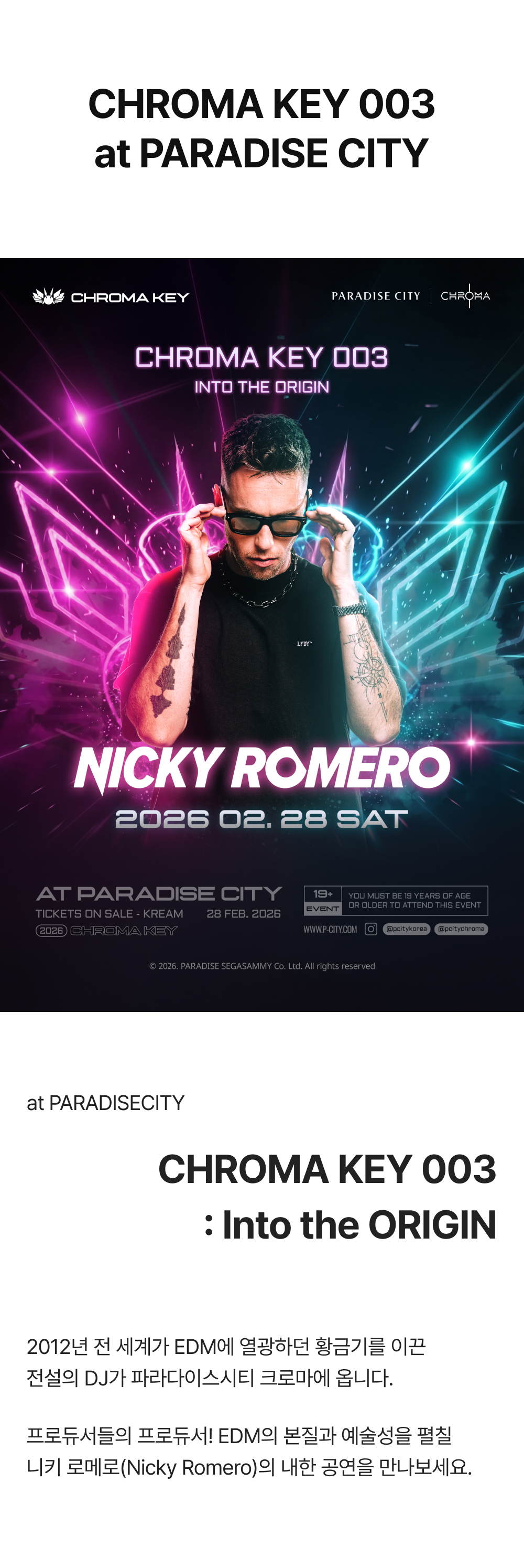 크로마키 003 - 니키 로메로 내한공연 1차 얼리버드 티켓