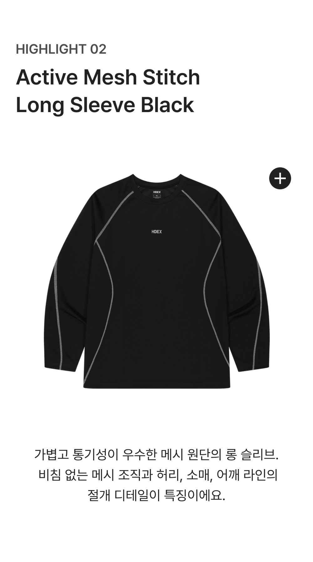 에이치덱스 액티브 매쉬 스티치 롱 슬리브 블랙