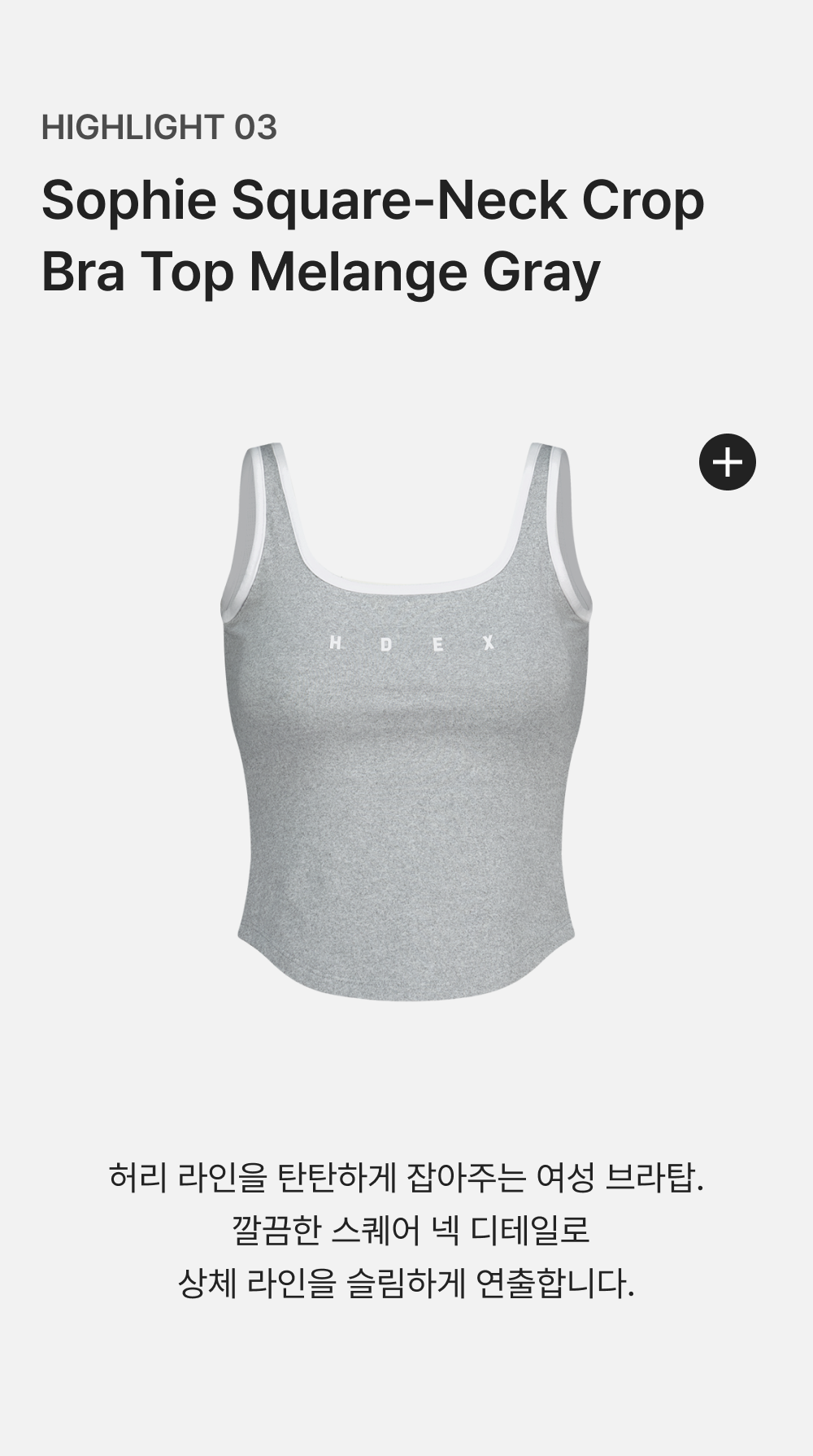 에이치덱스 소피 스퀘어넥 크롭 브라탑 멜란지 그레이