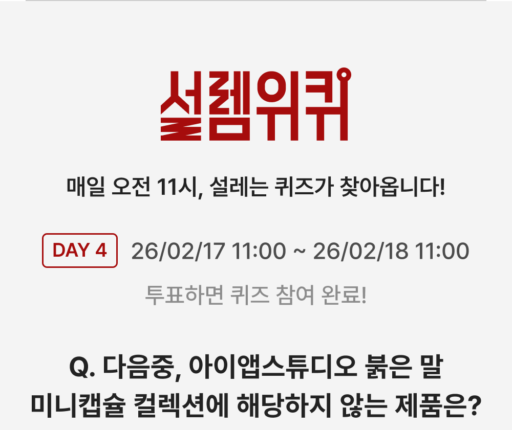 - 3회 이상 정답 시 : 애플 아이폰 17 프로 (256GB, 실버, 국내 정식 발매 제품) 추첨