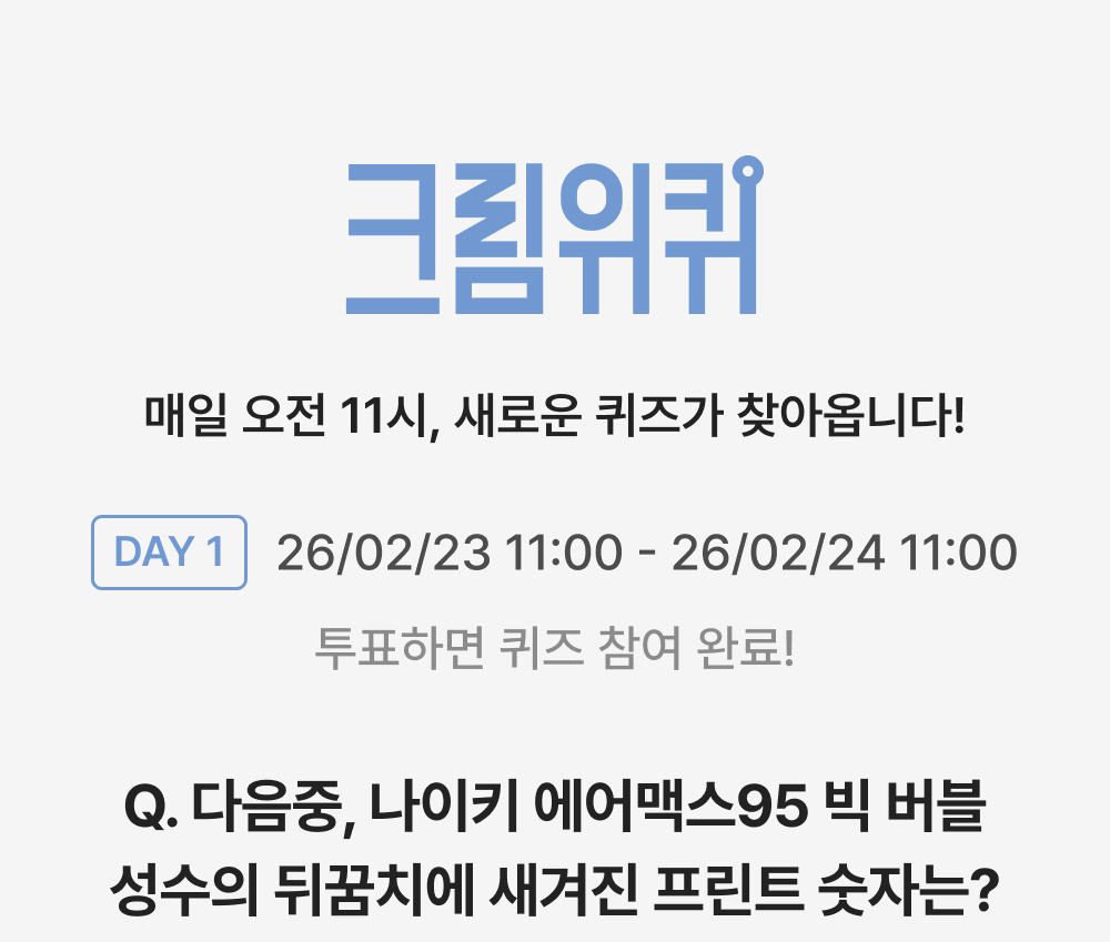 - 퀴즈는 매일 오전 11시 오픈되며, 제출 후 수정이 불가 합니다.